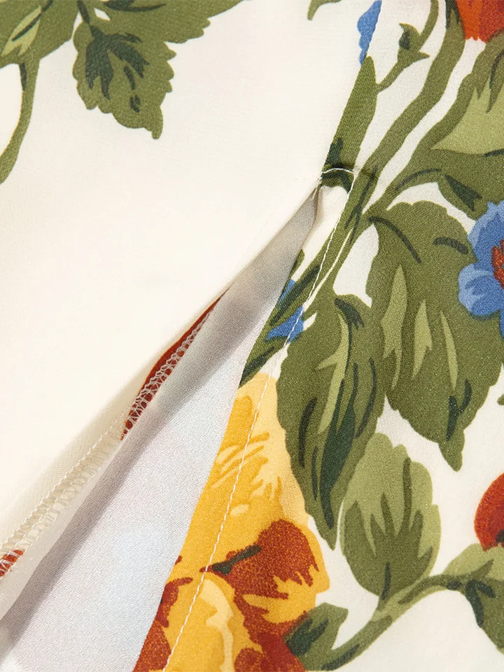 Product Name: Summer Elegant Strapless Neckline Midi Dress for Women Vintage Floral Print Chiffon Sexy Slit Spaghetti Sundress Casual Dresses