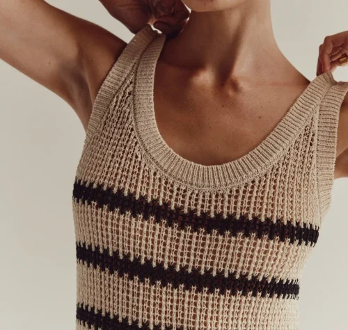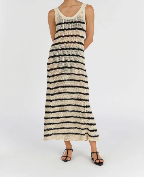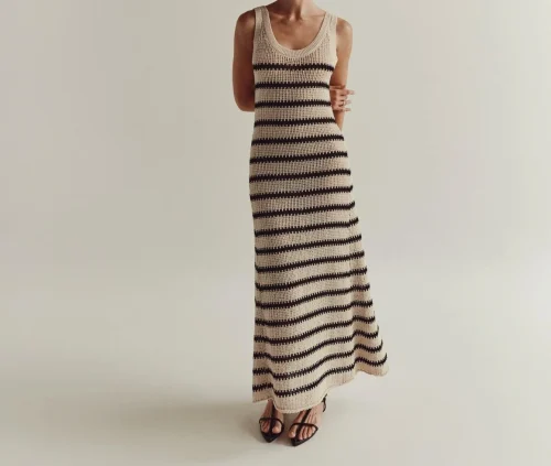 Product Name: Summer Sexy Striped Contrasting Hollow Beach Vacation Knitted Long Dress for Women