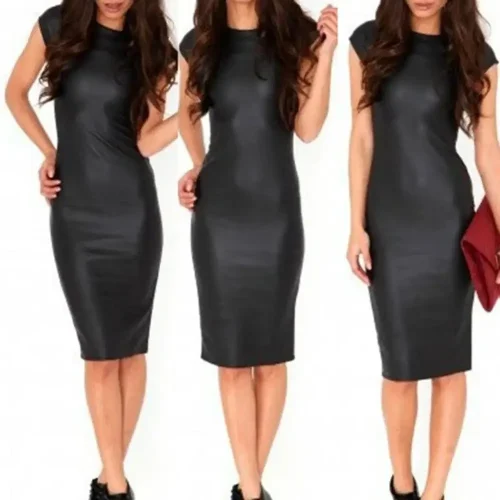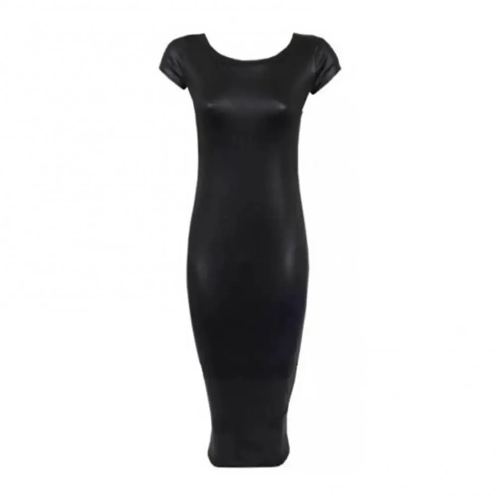 Summer Sexy Women PU Leather Dress Short Sleeve Bodycon Midi Office Dress Black Sexy Club Pencil Party Dresses 4XL