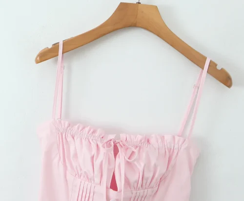 Summer Sleeveless Backless Off-the-Shoulder Dress Solid Color Natural Waistline Sexy Vest Button Eco-Friendly Washable