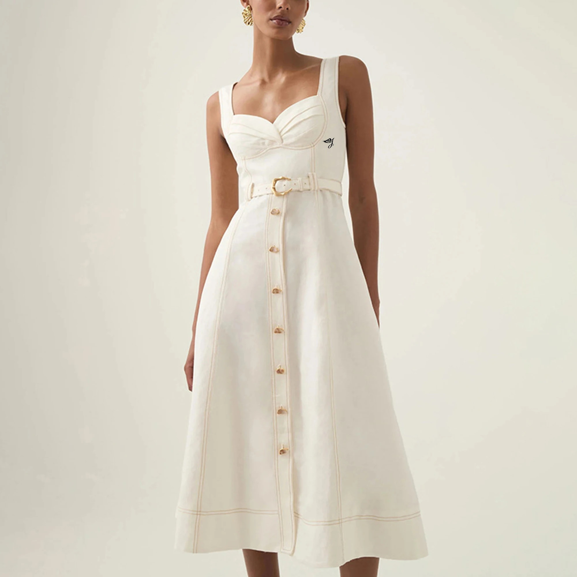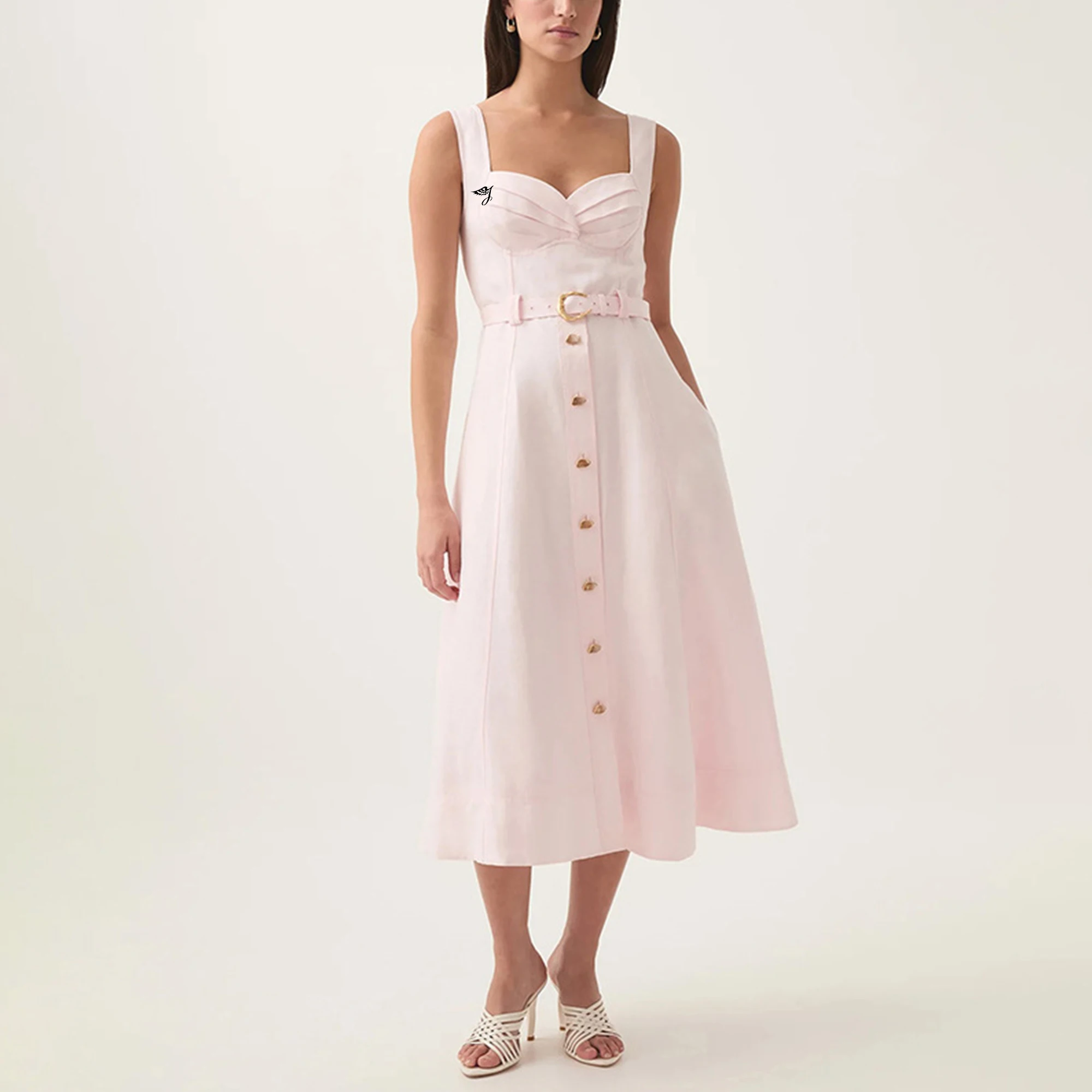 Summer Slip Dress Women Long Midi Length Collarless Anti-Static Anti-Wrinkle Printed Solid Parties