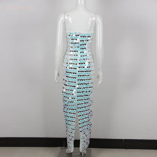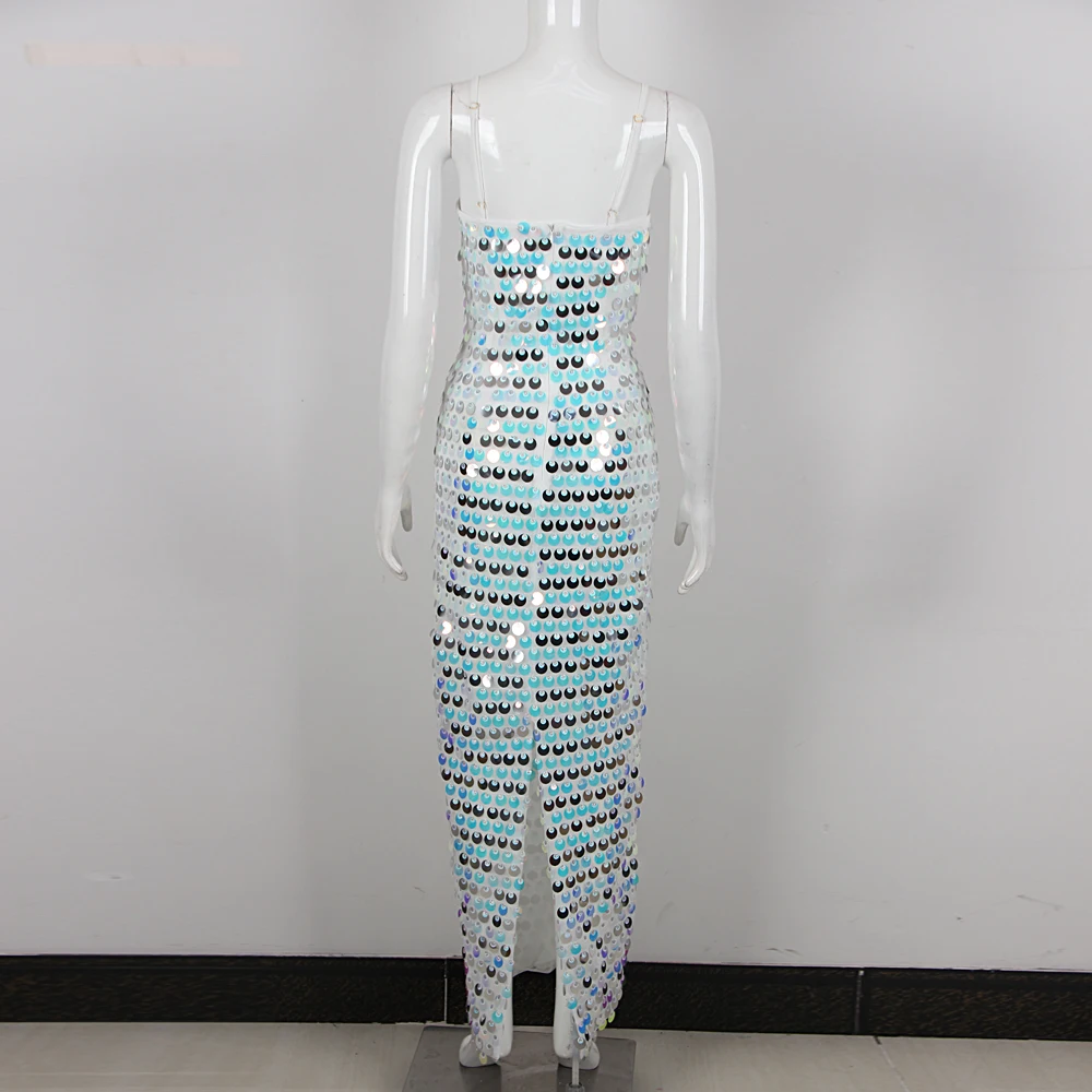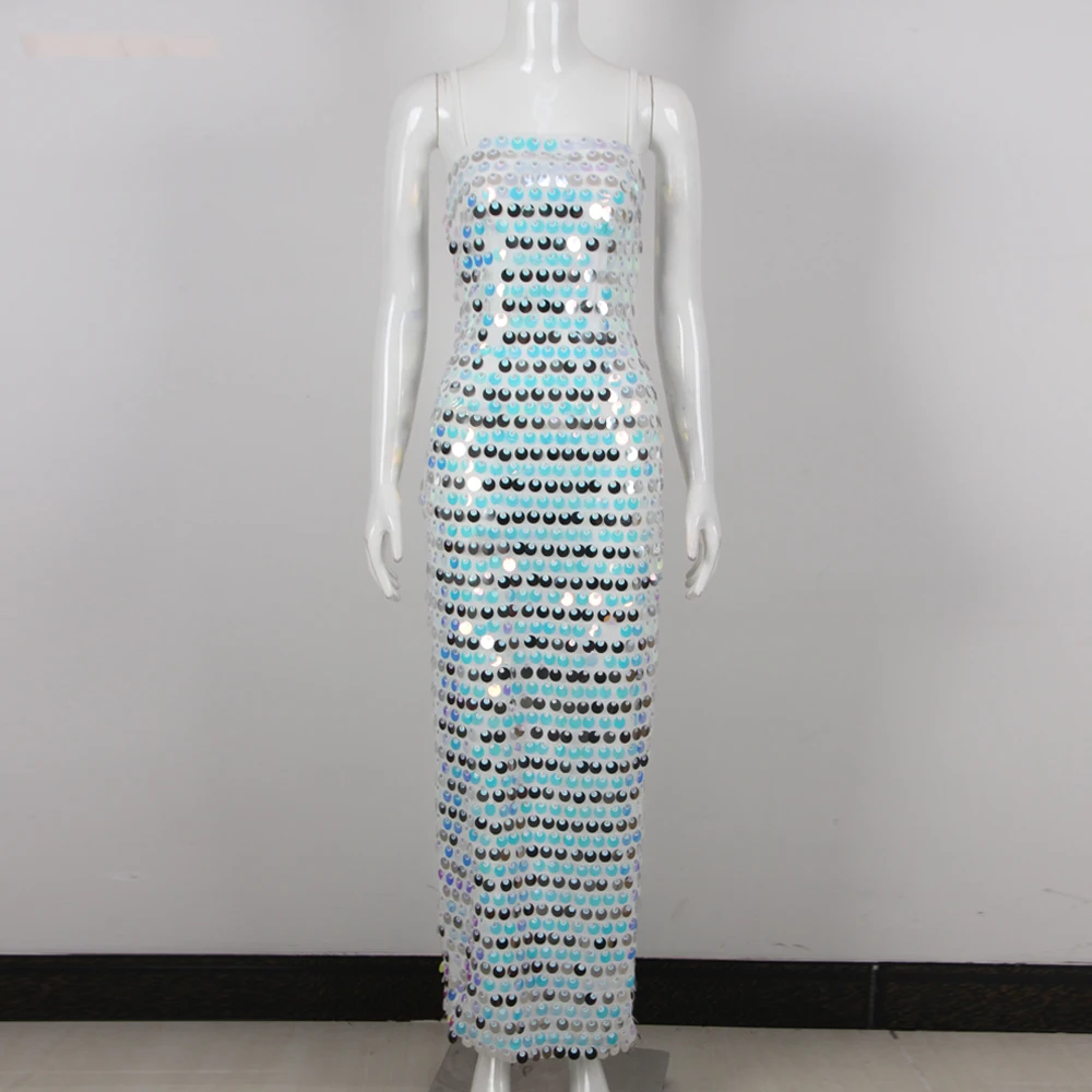 Product Name: Summer Vacation Shining Sequin Mesh Dresses Women Slip Sequins Elegant Evening Dress
