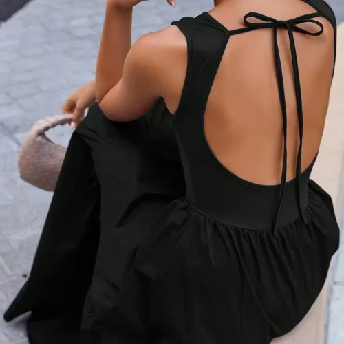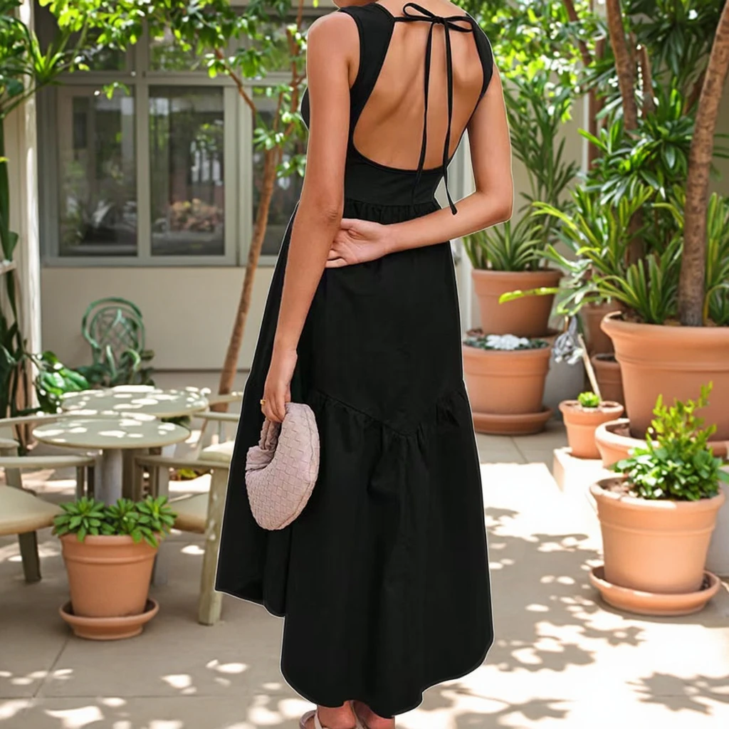 Product Name: Summer Women High Quality Linen Dresses Ladies Casual Blank Sleeveless Backless Polynesian Dress