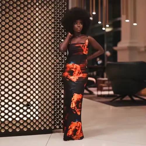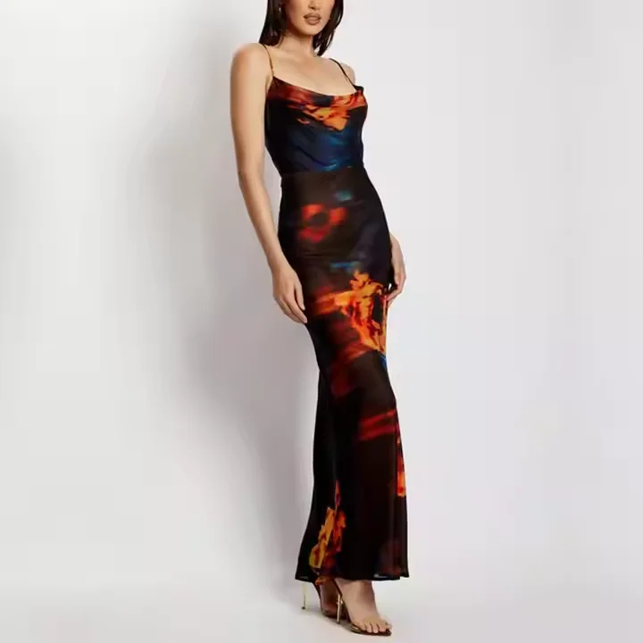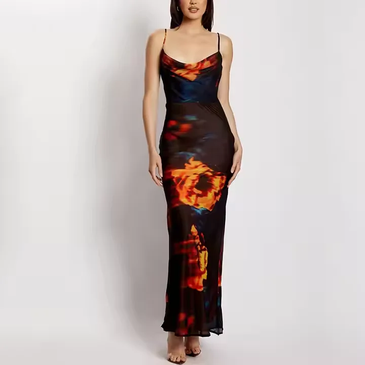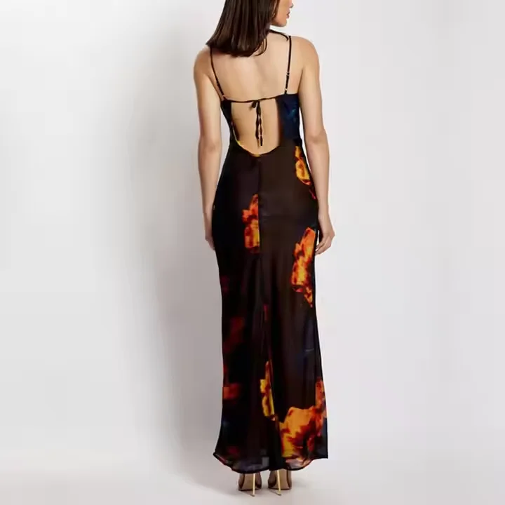 Product Name: Summer Women Long Flower Sleeveless Club Evening Dress Satin Backless Cowl Neck Elegant Maxi Casual Dresses With Lining