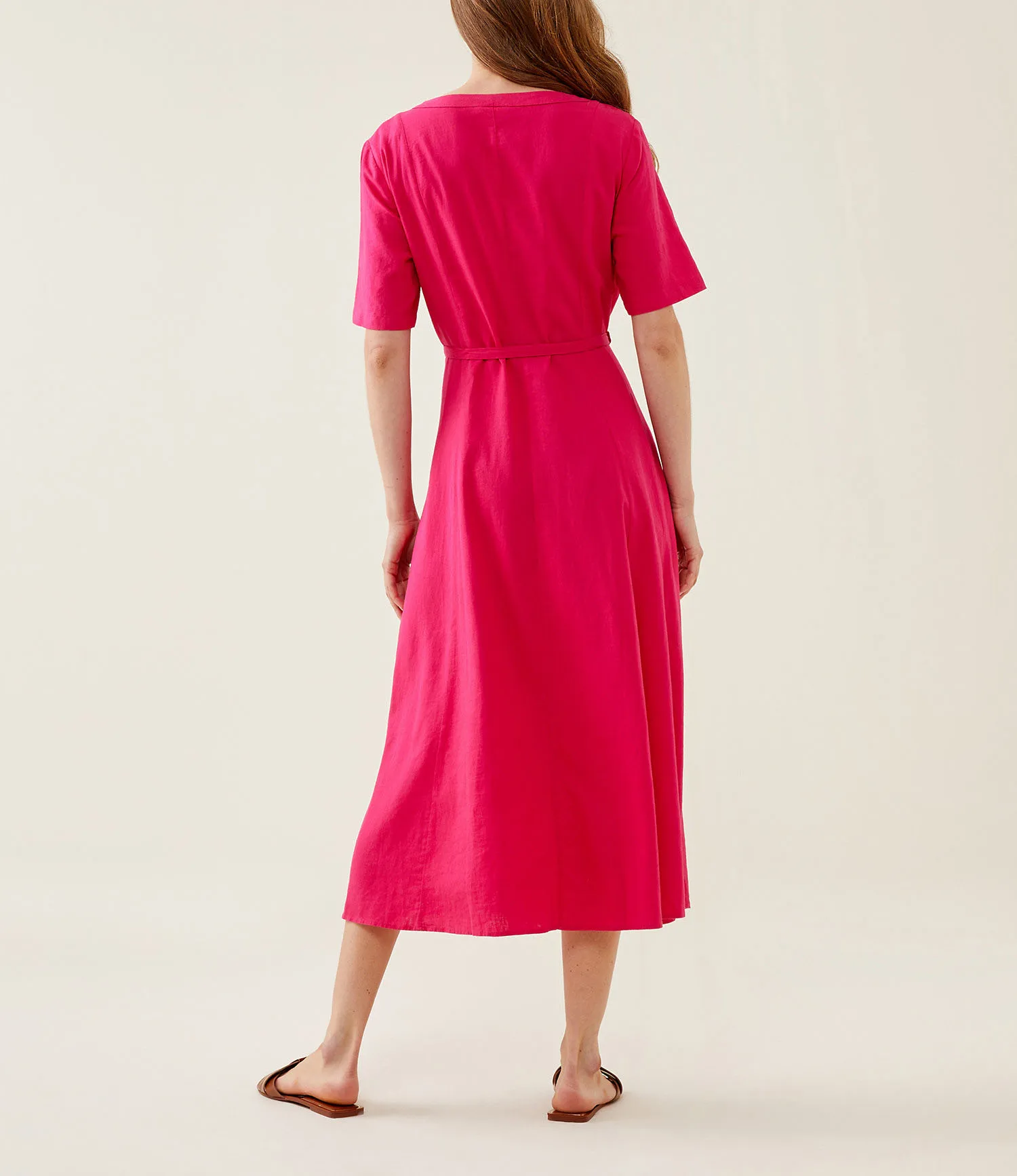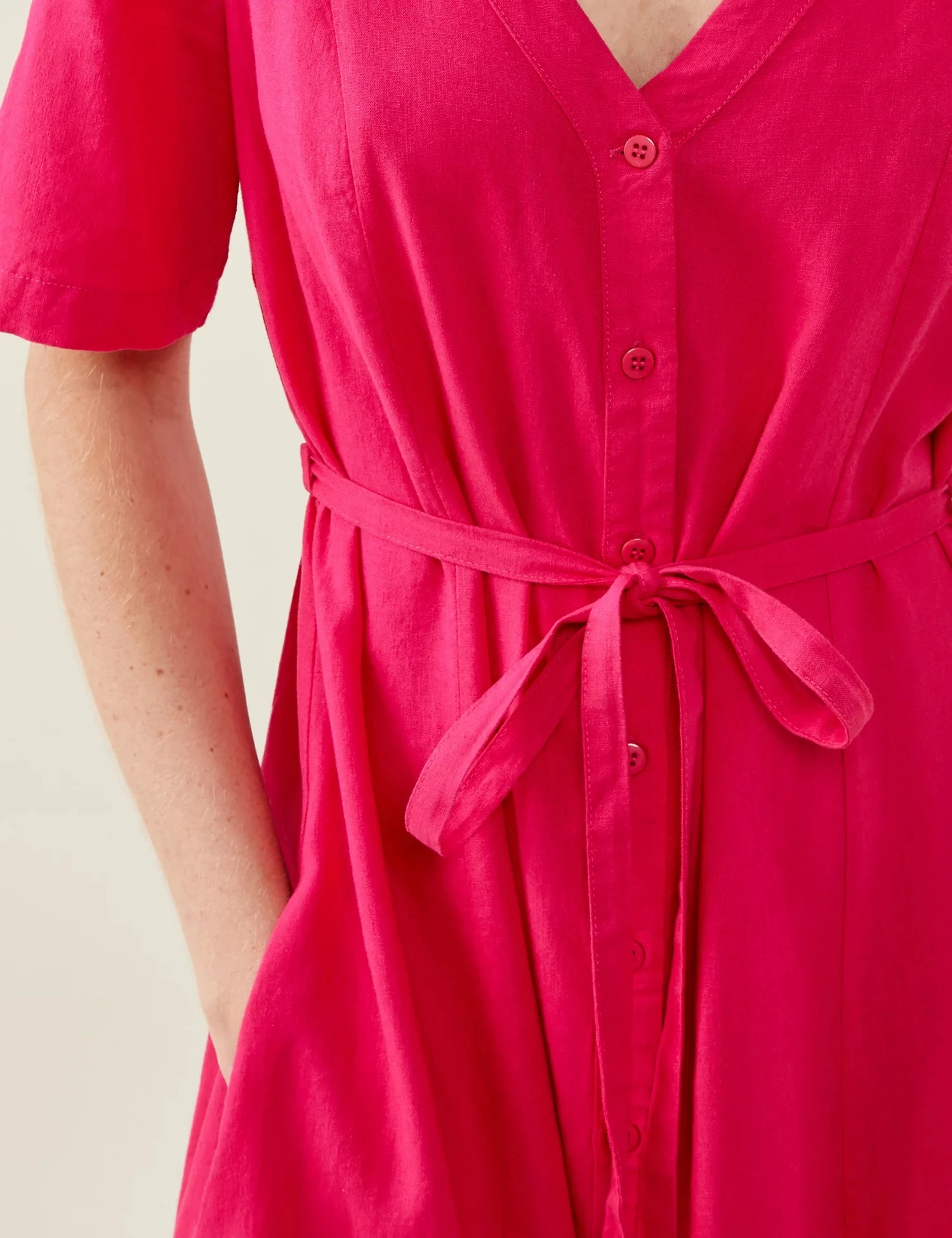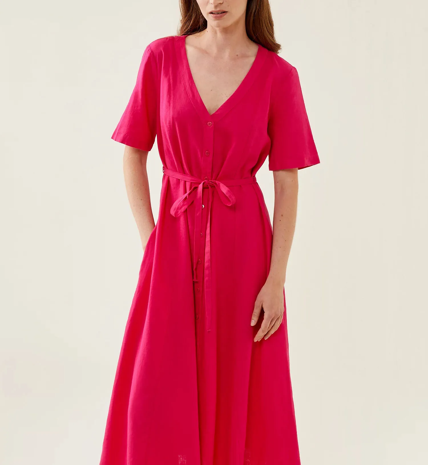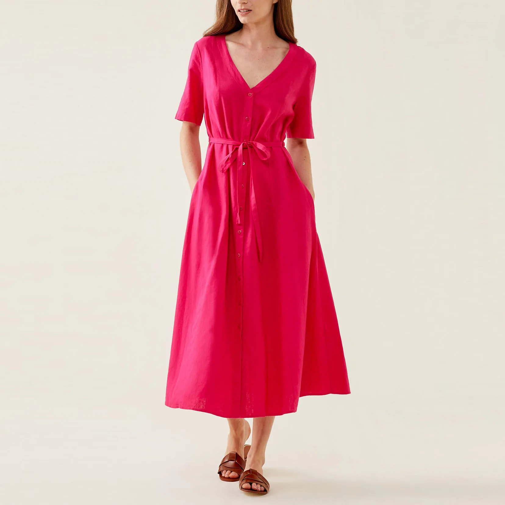 Product Name: Summer Women’s Dresses up Women’s Medium Long Linen Dress V-neck Short Sleeve Blend Casual Front Button Waist Lace ODM