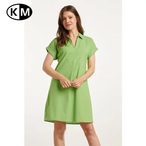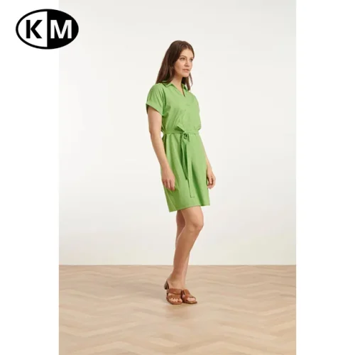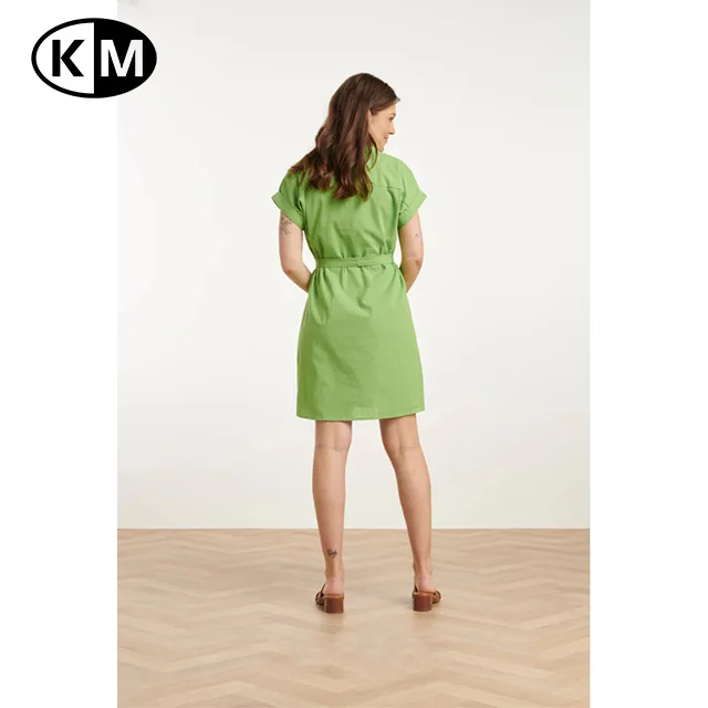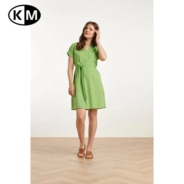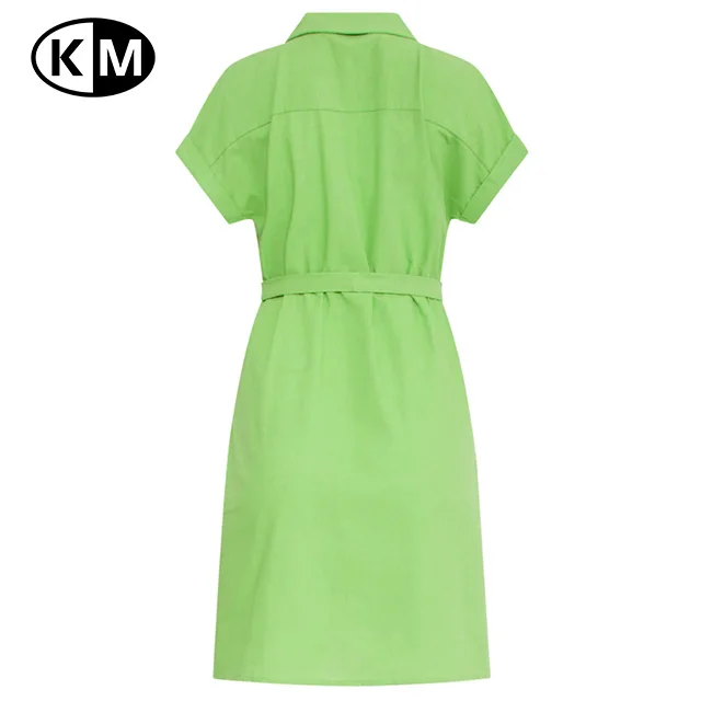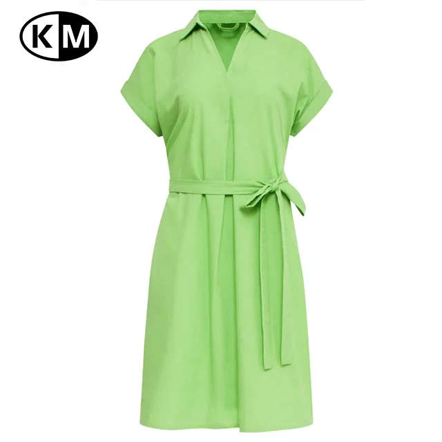 Summer Women’s Fashionable Solid Pattern Short-Sleeve Green Belted Dress