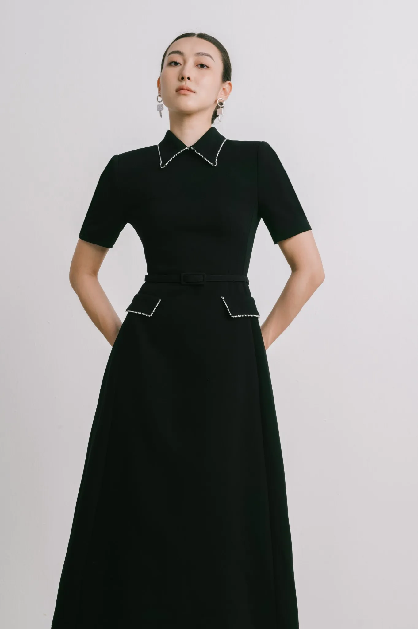 Product Name: Sustainable Clothing Brand Comfortable Women’s Dresses A-line Midi Dress Good Quality Material ILY CHAIN DETAIL MIDI DRESS