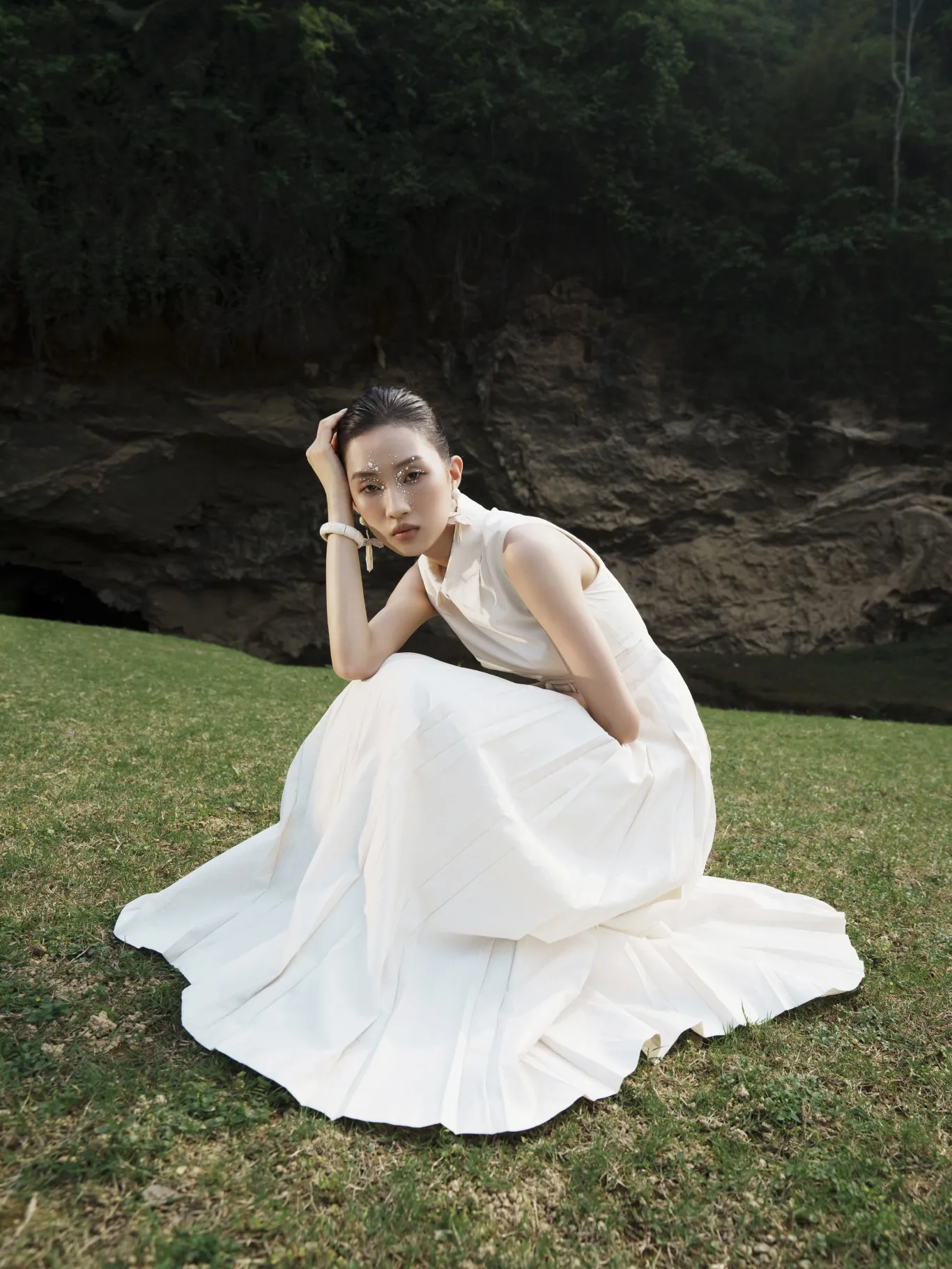 Sustainable Fashion EMILIA PLEATED MIDI DRESS Floral Cotton Jacquard High Quality Luxury Women Dresses Good Price Order in Bulk
