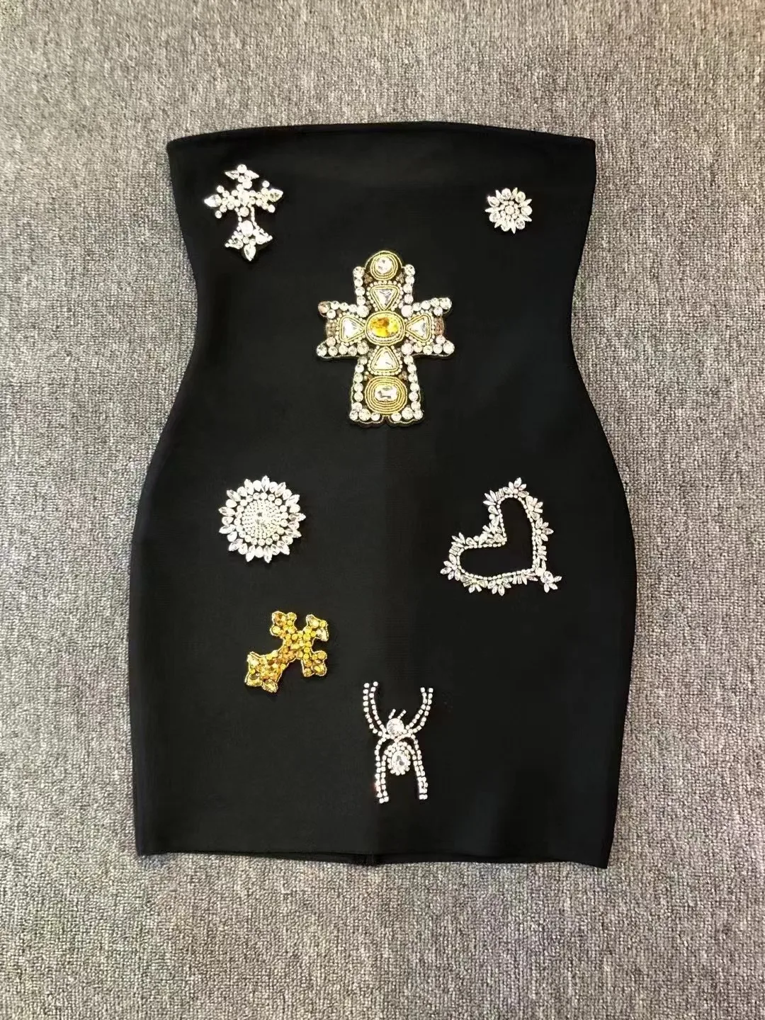 sweet Summer Spice for Bandage Dress Set Sexy Backless Tube Mini Diamond Skirt Embroidered Casual Sundress for Club Occasions