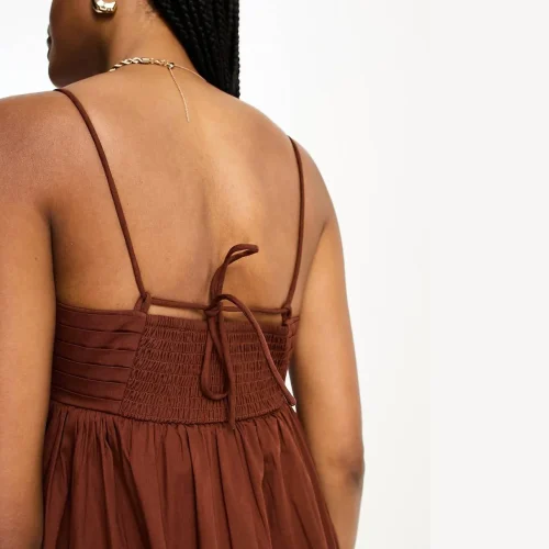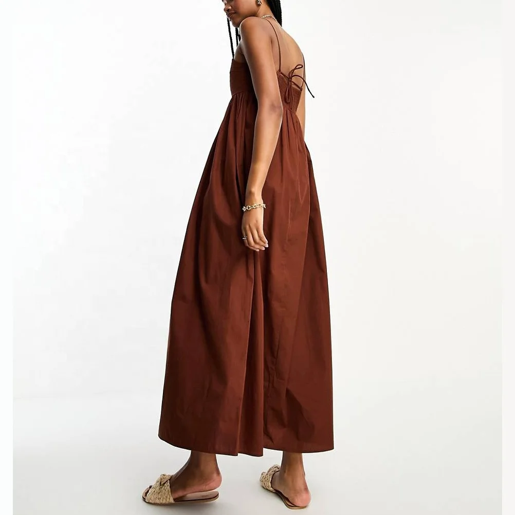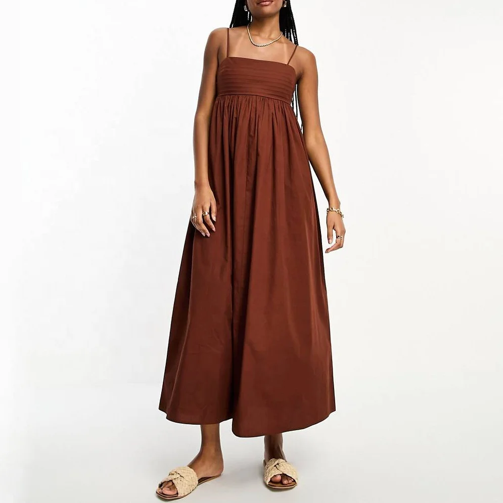 Product Name: Tall Cotton Pleat Bust Babydoll Midi Sundress Square Neck Ruffle Tie Back Regular Fit Holiday Women Dress