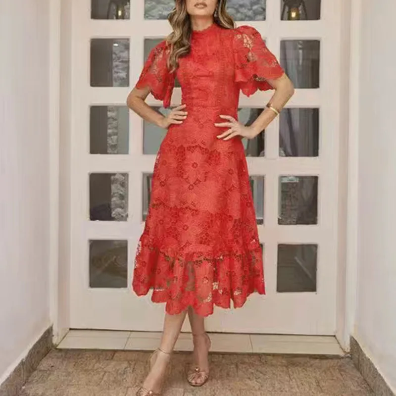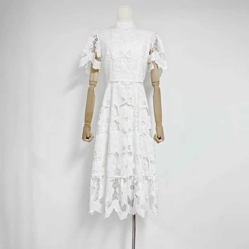Temperament Casual Dresses Female 2025 Summer New Style Fashion Elegant Style Lace Hollow Design White Long Dress