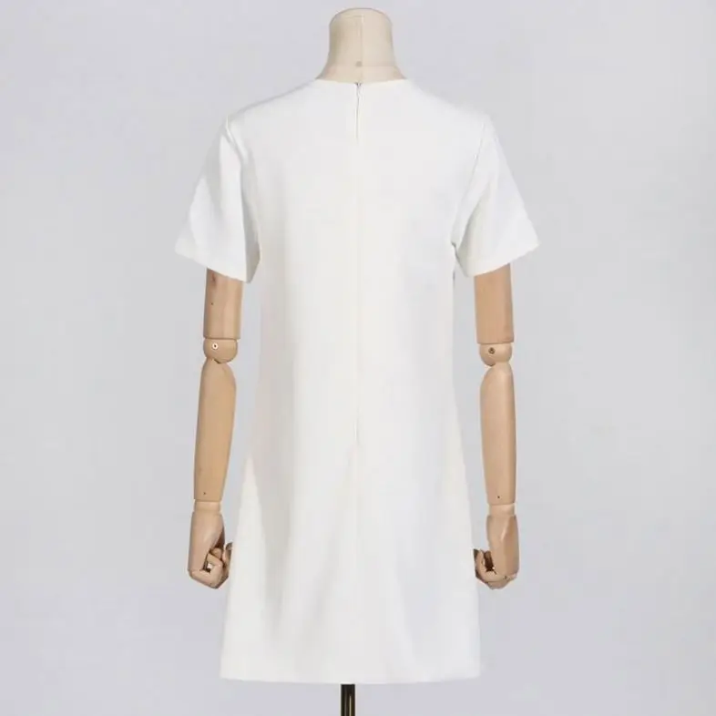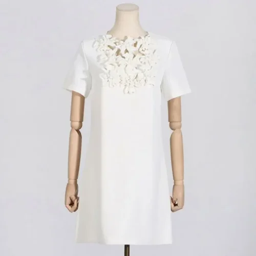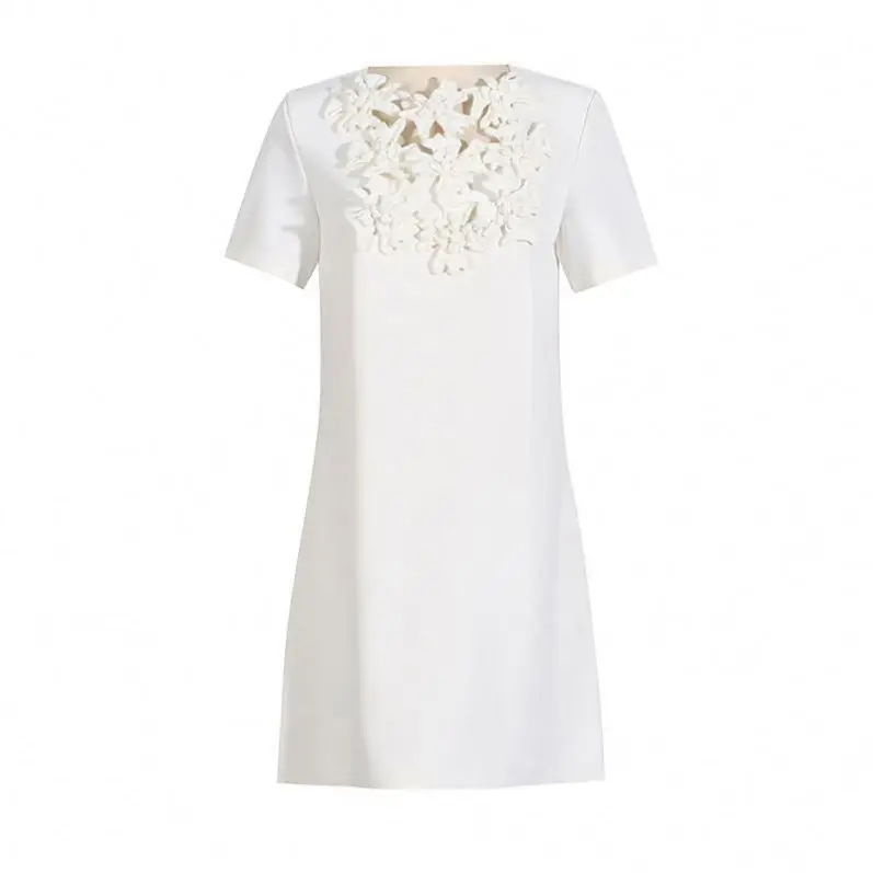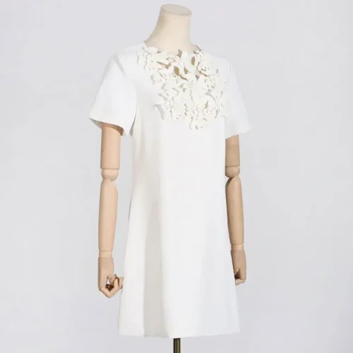 Product Name: Temperament Commute Elegant A- Line Short Skirt Round Neck Hollow Out Three-Dimensional Flower High Waist Dress Women
