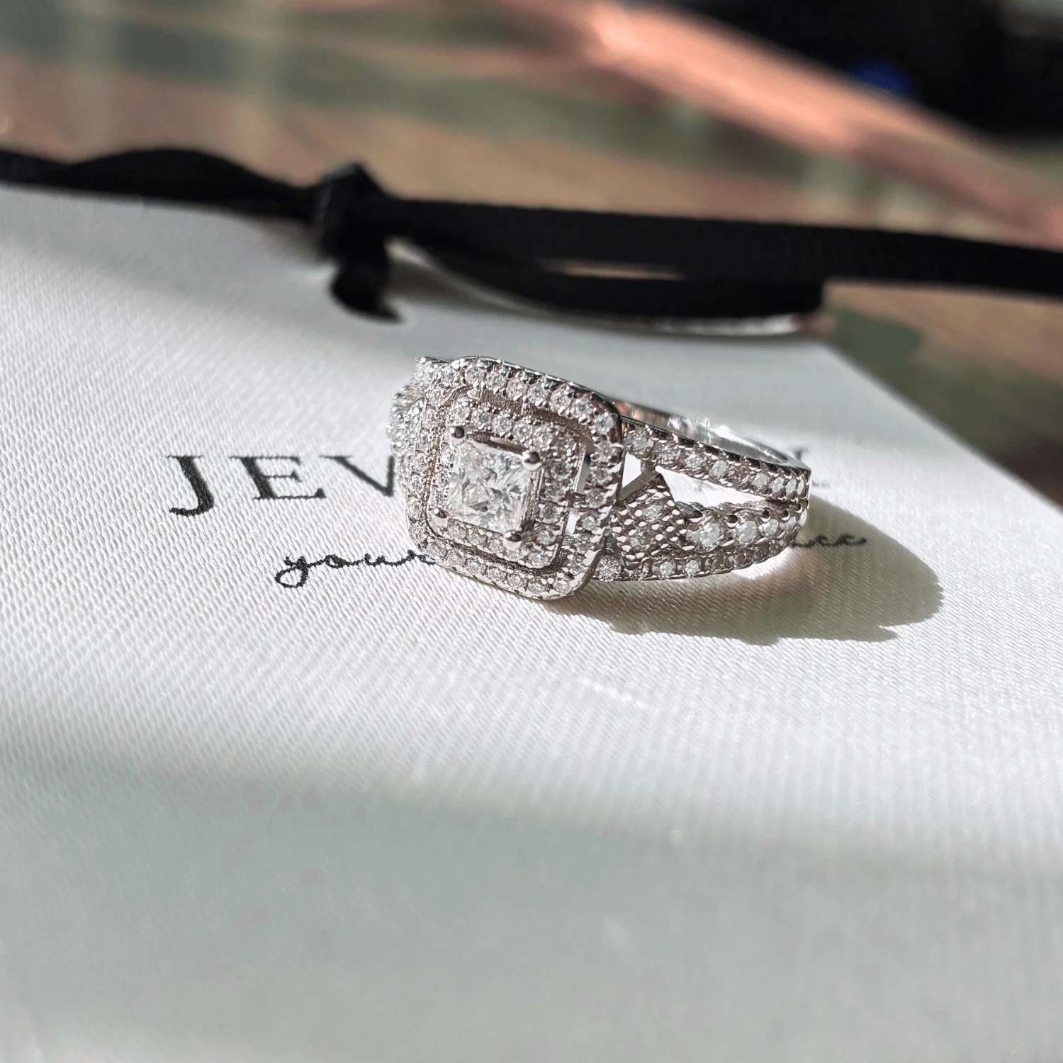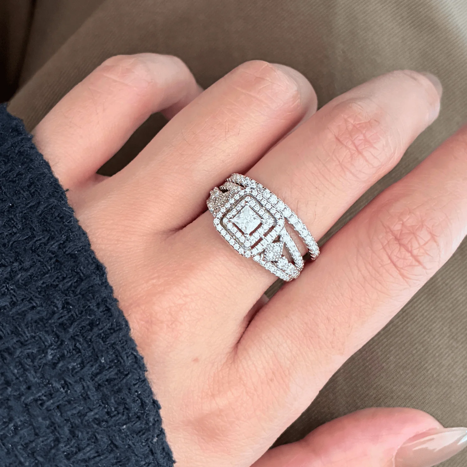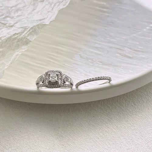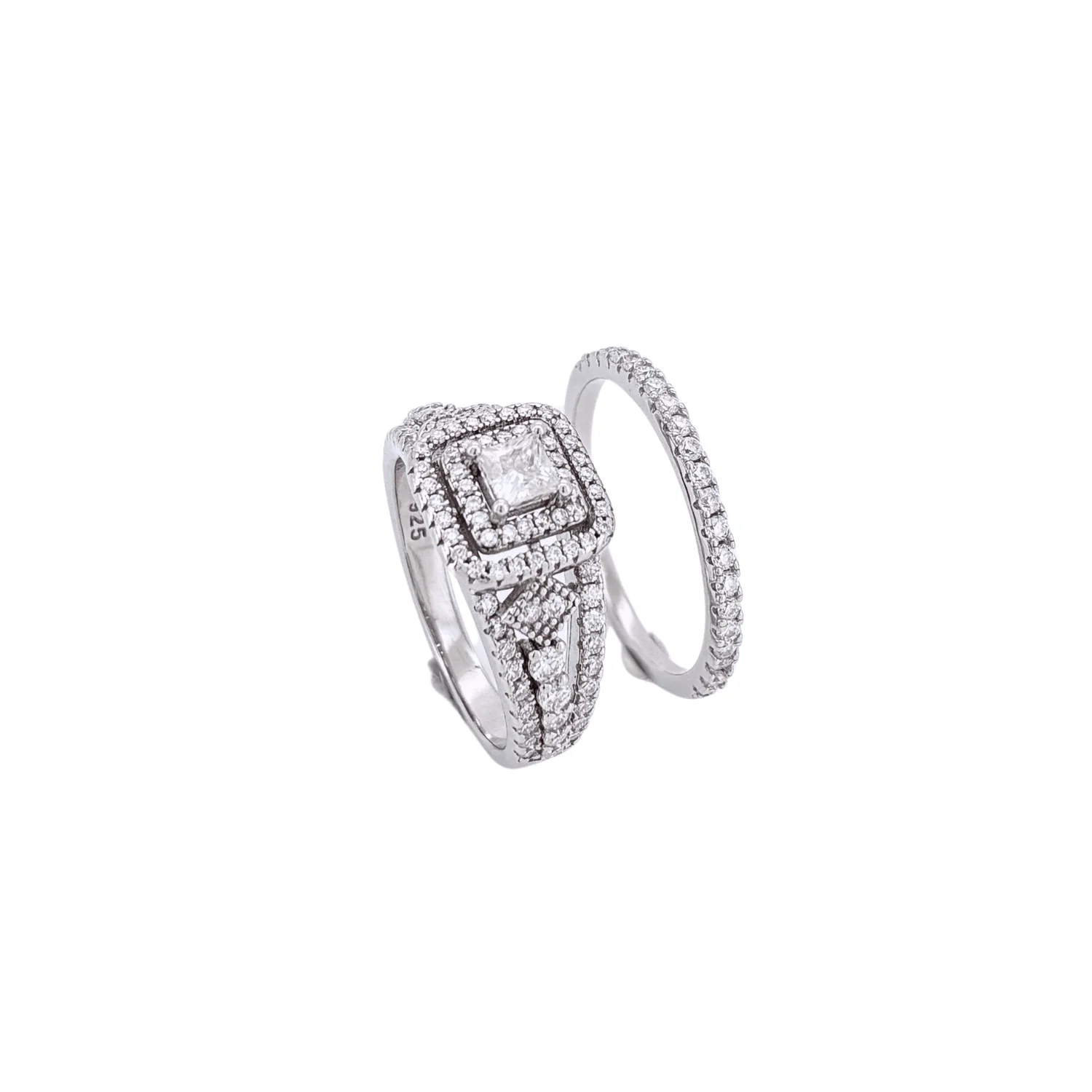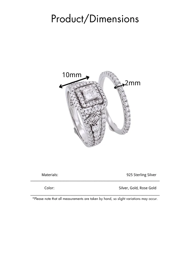 Temperament Couple Engagement Ring Rhodium Plated Square Diamond Zircon Wedding Ring for Women Men Cluster Bridal Set