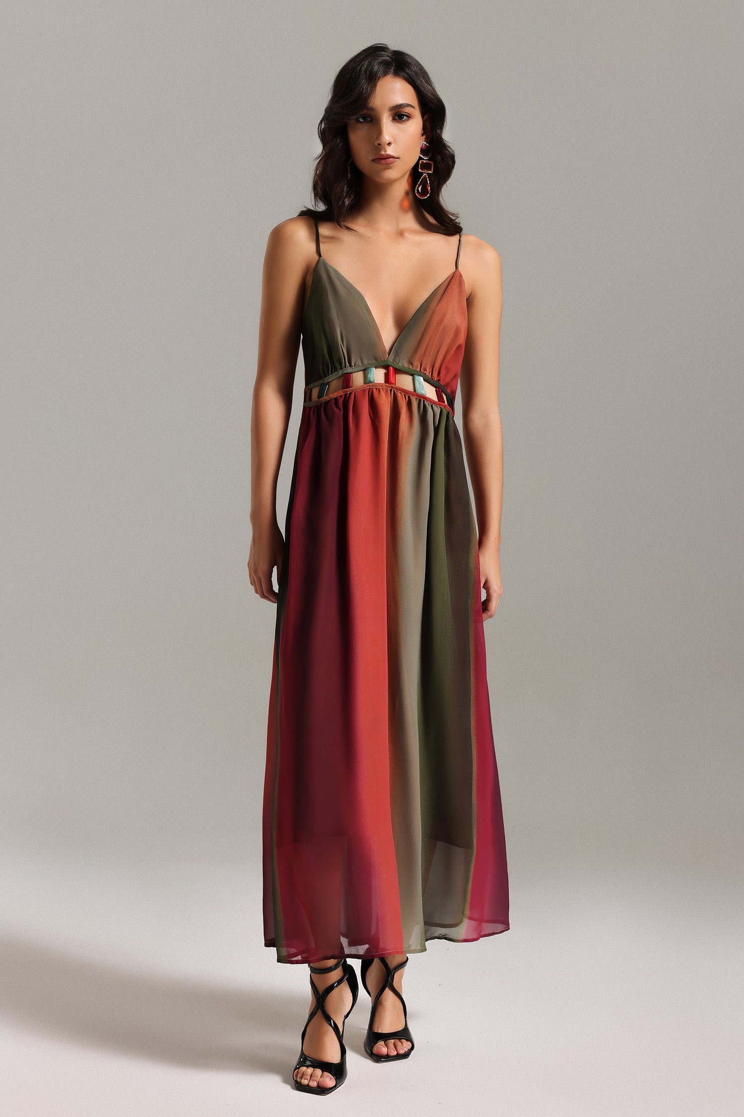 Tinnie Halter V Neck Cut Out Maxi Dress
