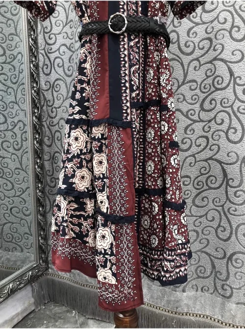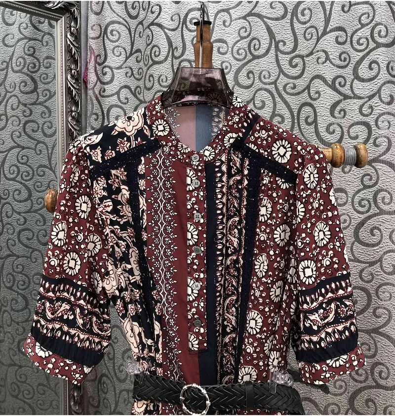 Top Quality New Summer Dress 2024 Fashion Designer Clothes Women Vintage Print Belt Deco Short Sleeve Mid-Calf Dress Luxury