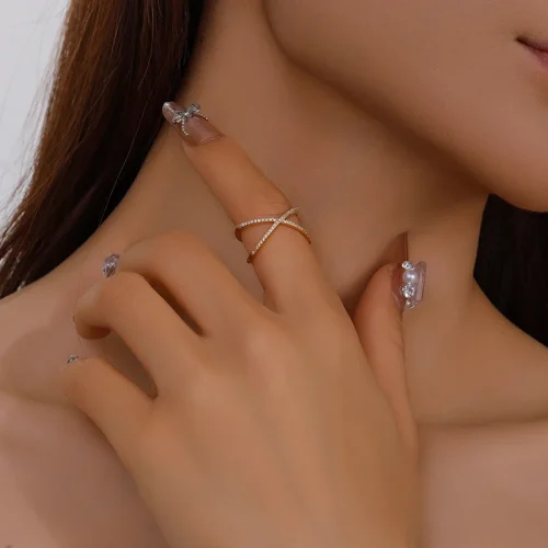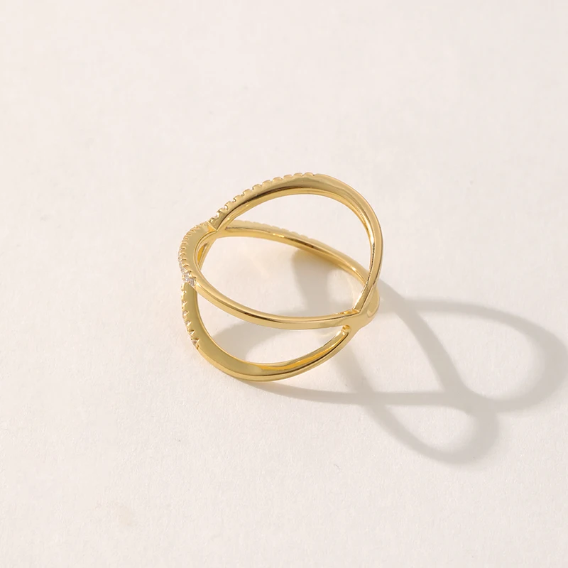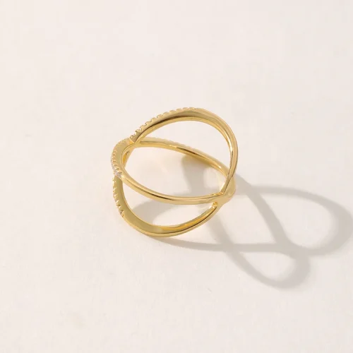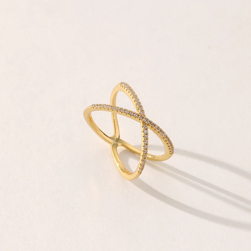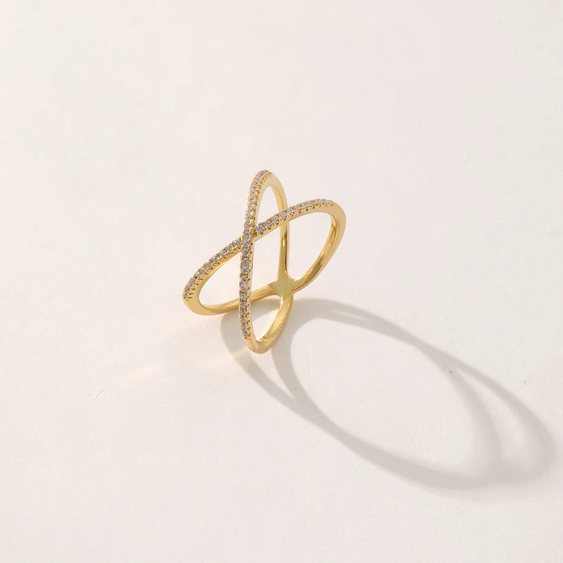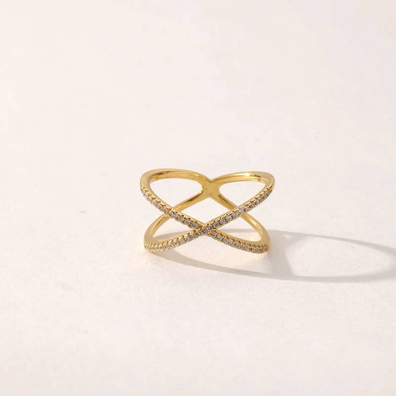 Product Name: Trendy Gold Plated X Shape Cubic Zirconia Ring Fashionable Brass Jewelry for Women for Weddings