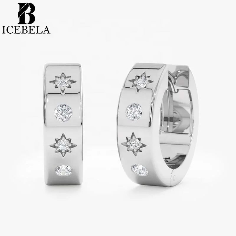 Trendy Luxury Fashion Fine Jewelry 925 Sterling Silver Designer Starburst Zircon Hoop Earrings for Girls Women