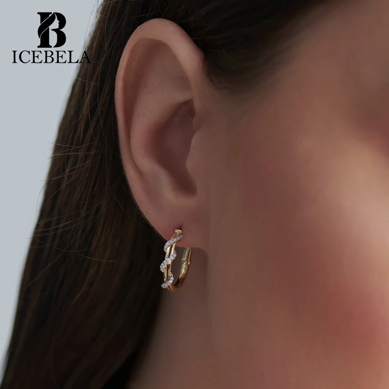 Trendy Stylish Luxury Fine Jewelry 925 Sterling Silver Designer Sense Zircon Coiled Medium Hoop Earrings for Women