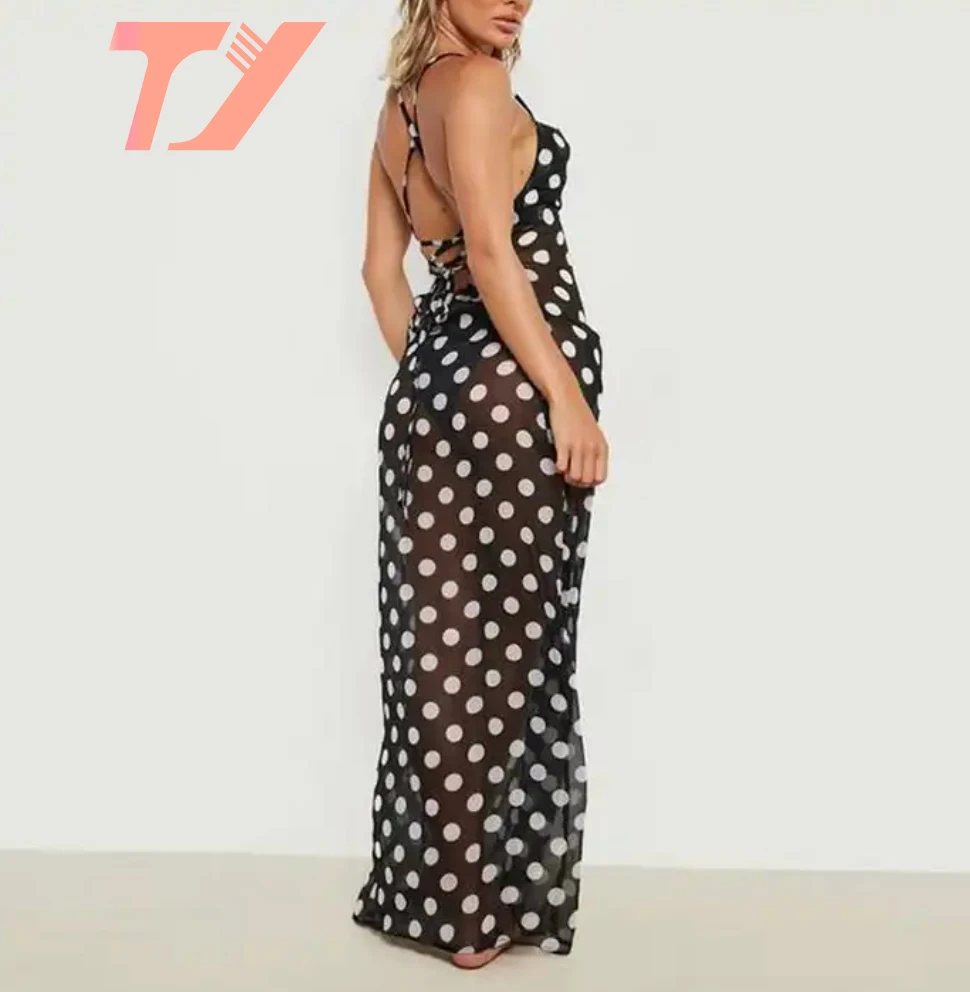 Product Name: TUOYI Women Summer Sexy Sun Dress Dresses Maxi Black Chiffon Split Beach Dress