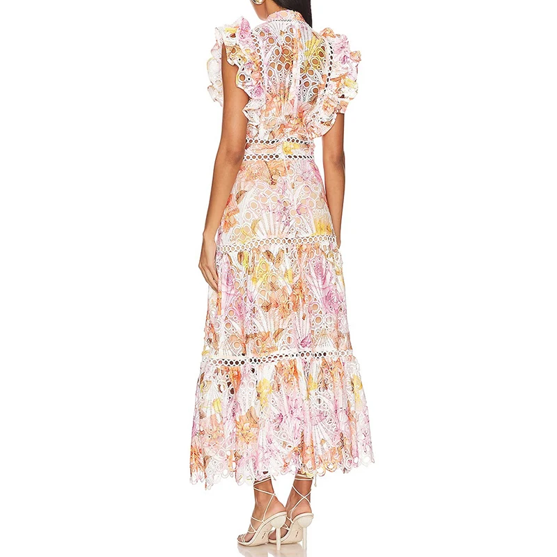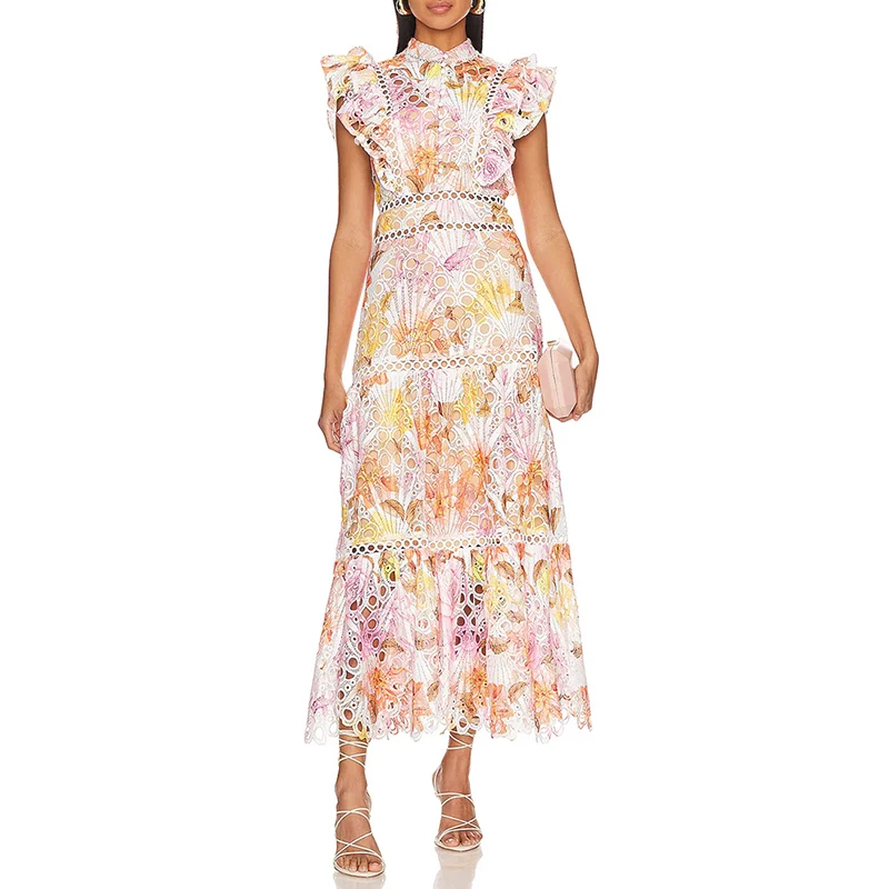 Product Name: TWOTWINSTYLE Colorblock Printing Casual Dresses Flying Sleeve High Waist Hollow Out Elegant Dresses Women