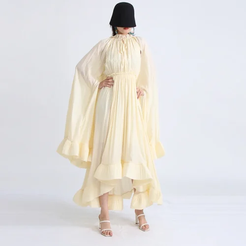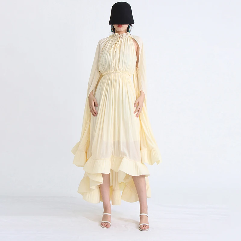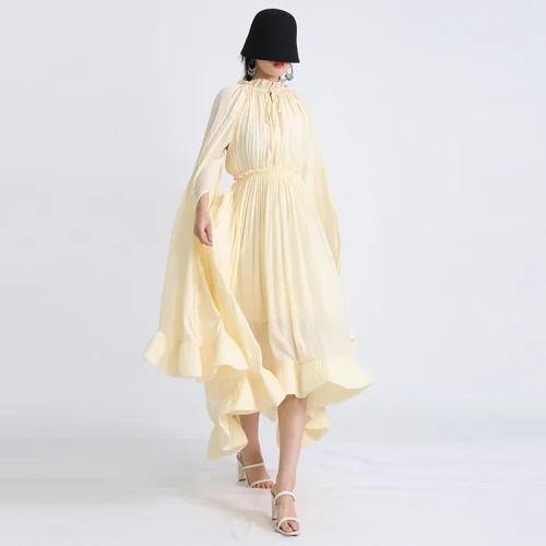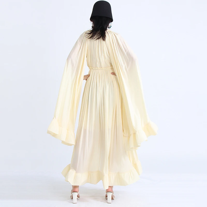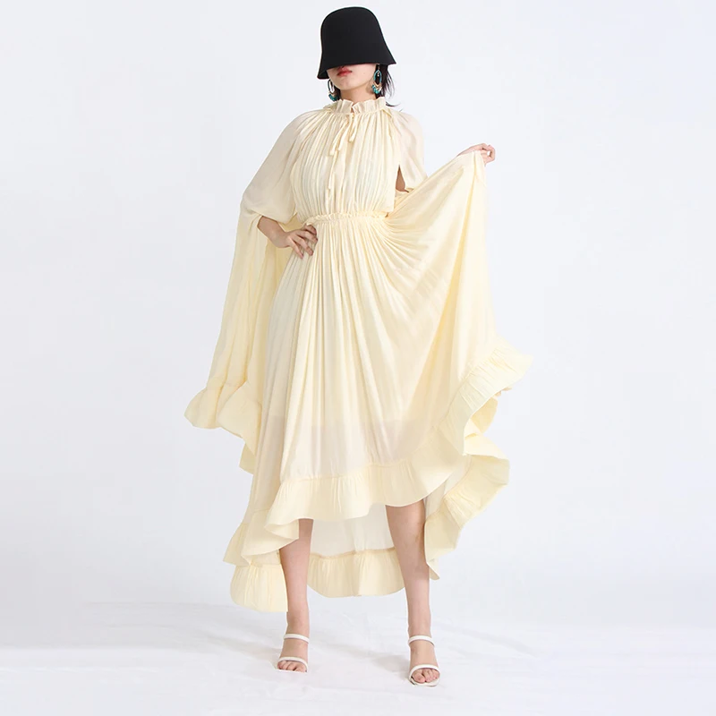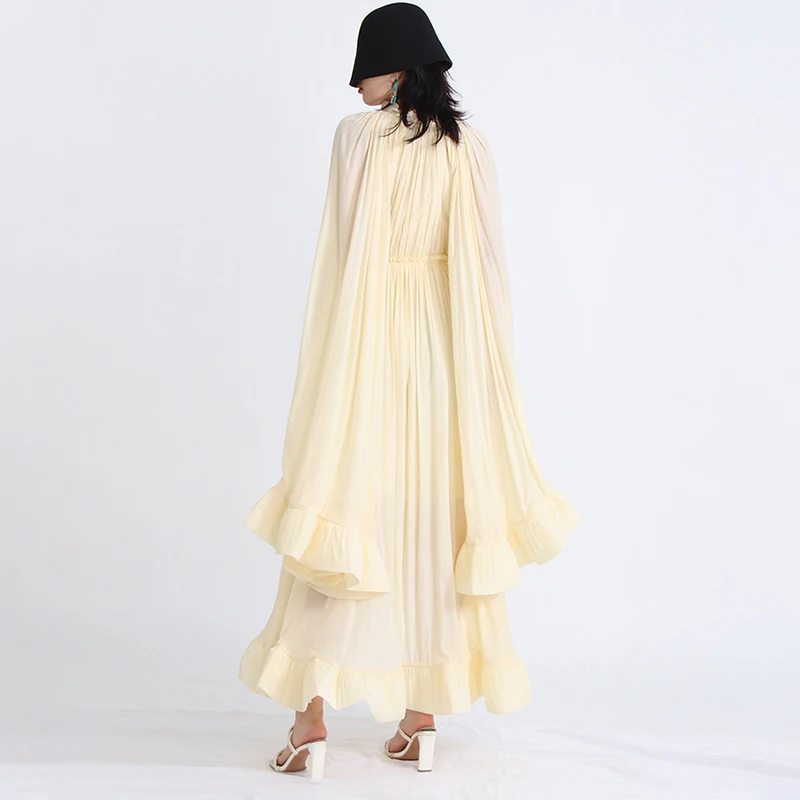 Product Name: TWOTWINSTYLE Summer Trendy V-Neck Ruffled Casual Dress Lady Elegant Long Dresses Women