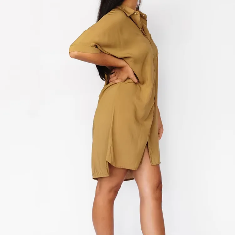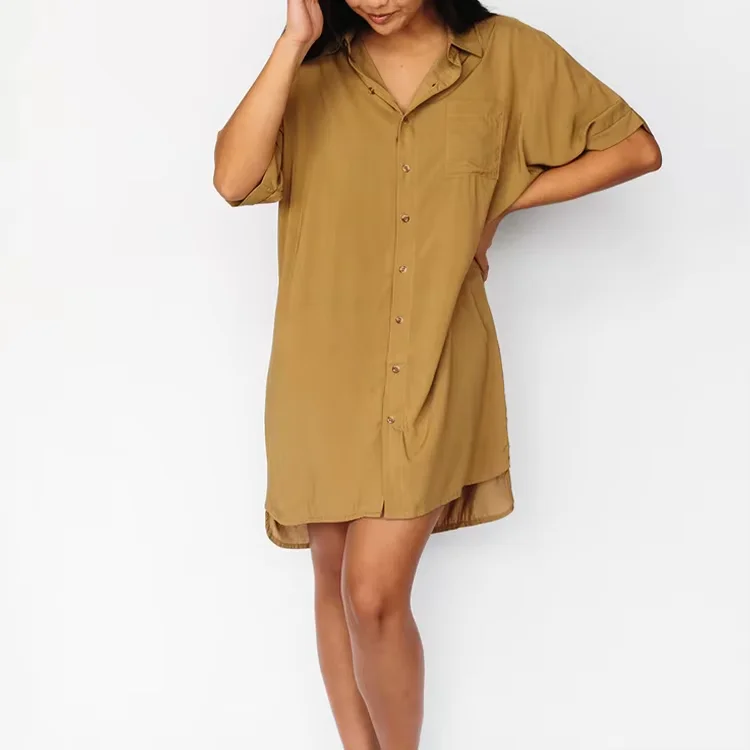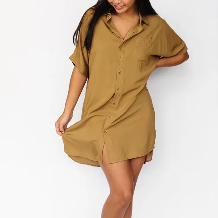 USA True to Size Shirt Dress With Pockets LOW MOQ Print Viscose Rayon Women Shirt Dress