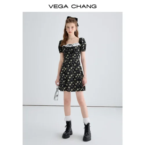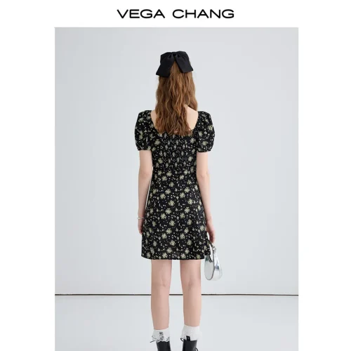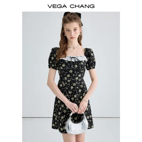 Product Name: VEGA CHANG Short Sleeve Dresses Party Ladies Dress Women Elegant Casual Dress