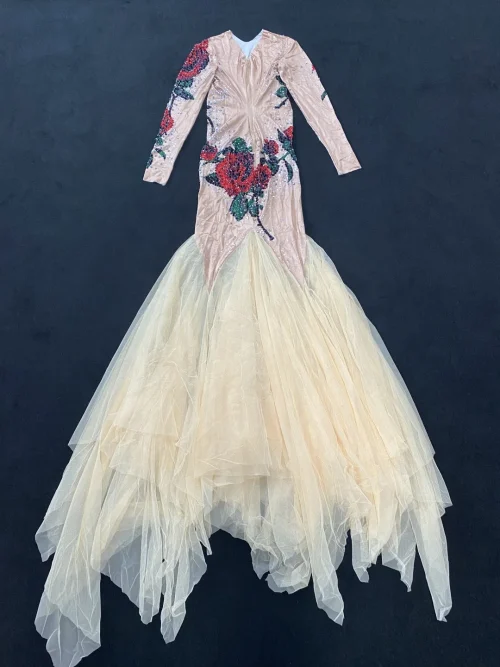 Vestidos Mujer Elegant Floral Rhinestone Dinner Gown Lady Wedding Guest Formal Prom Mermaid Dress Women Party Evening Dresses
