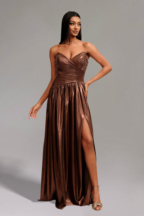 Viky Strapless Pleat Elastic Coating Maxi Dress