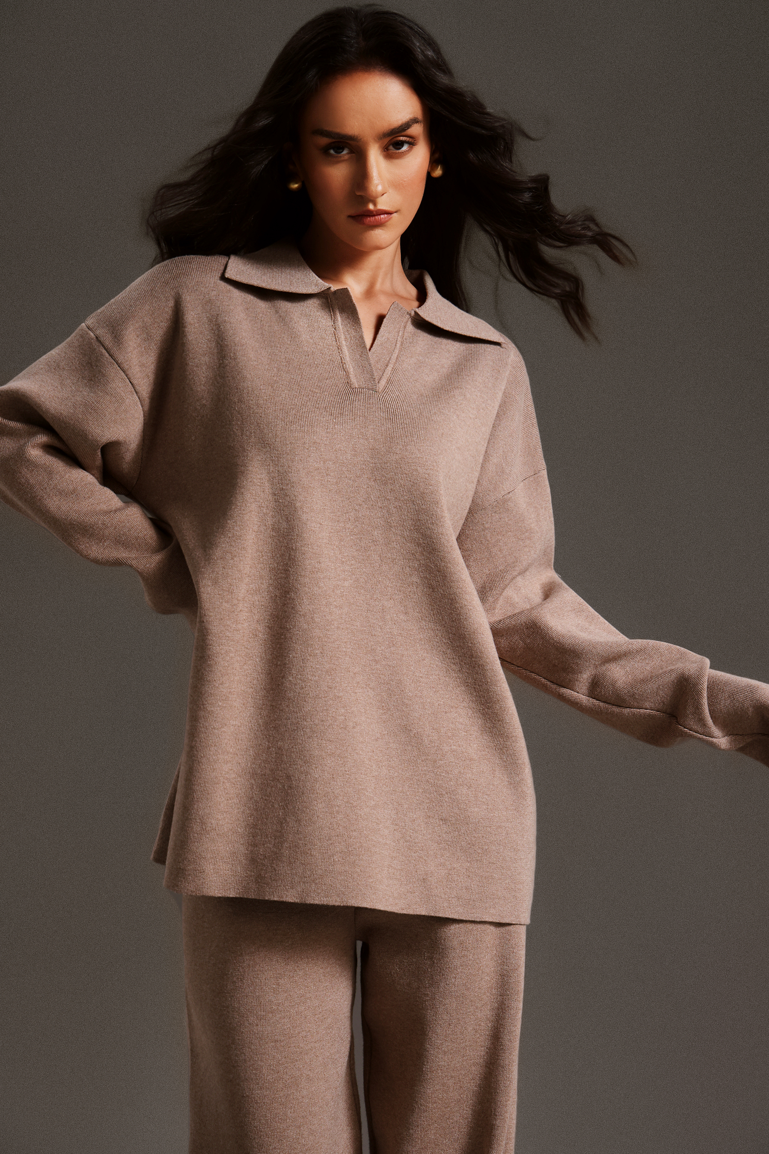 Vincy Polo Neck Long Sleeves Trousers Two-Piece Set