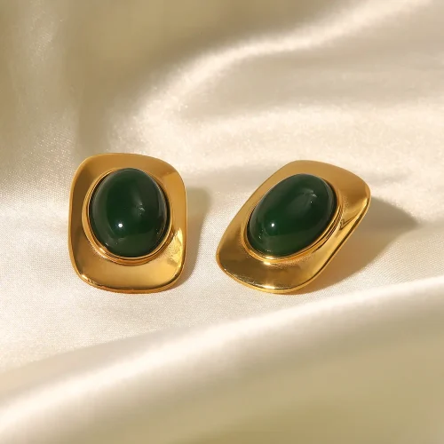Product Name: Vintage Square Stone 18K Gold Plated Stud Earrings Luxury Stainless Steel Gemstone Square Stud Earrings