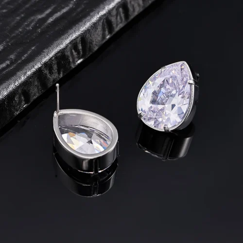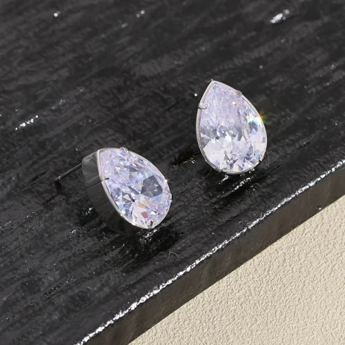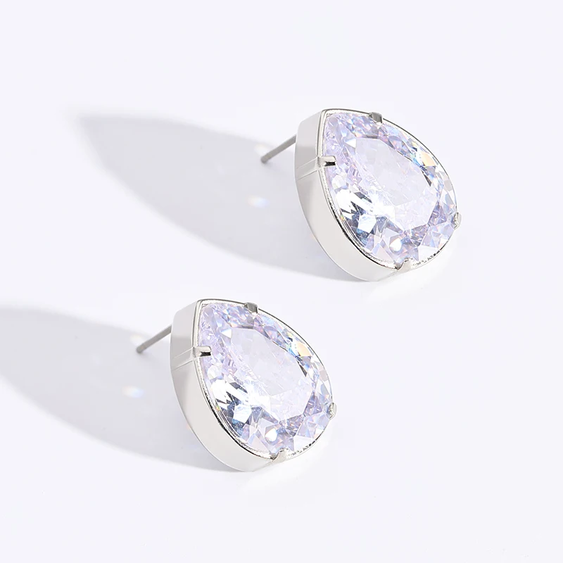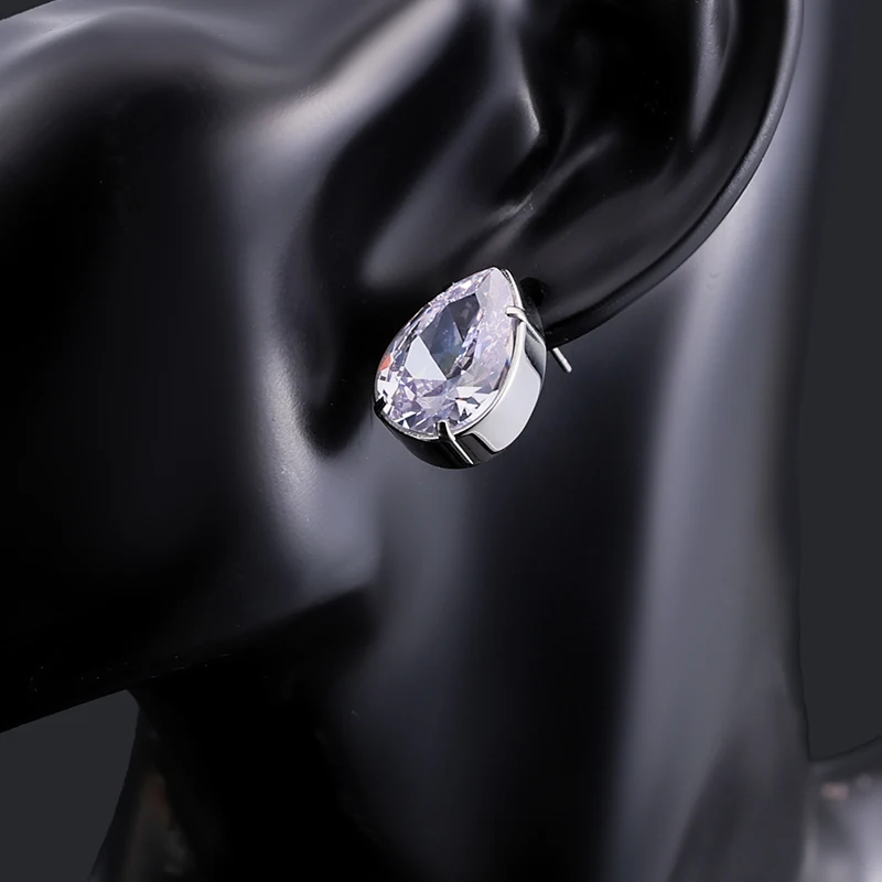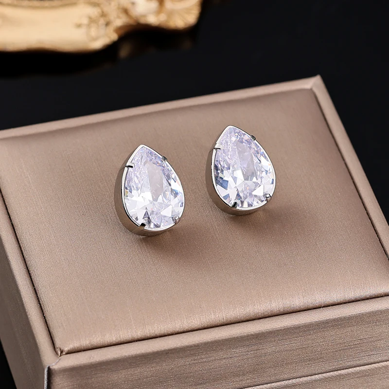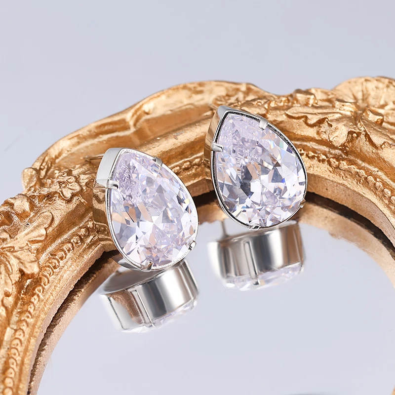 Waterproof Stainless Steel Stud Earrings for Women & Girls White CZ Zircon Gold Plating Trendy Bridal Fashion Jewelry