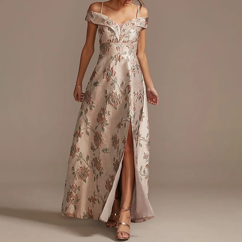 Weixin Brocade Off the Shoulder Ball Gown Slit Evening Dresses Party Women