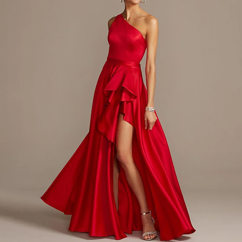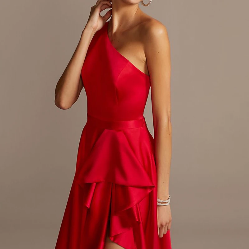 Product Name: Weixin One Shoulder Asymmetric Satin Cascade Night Gowns for Ladies