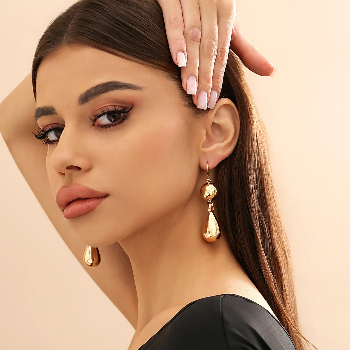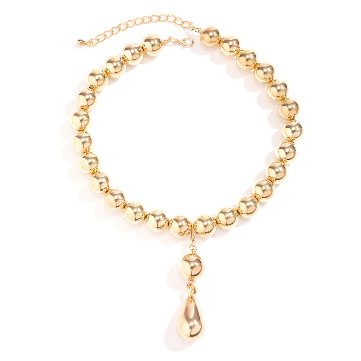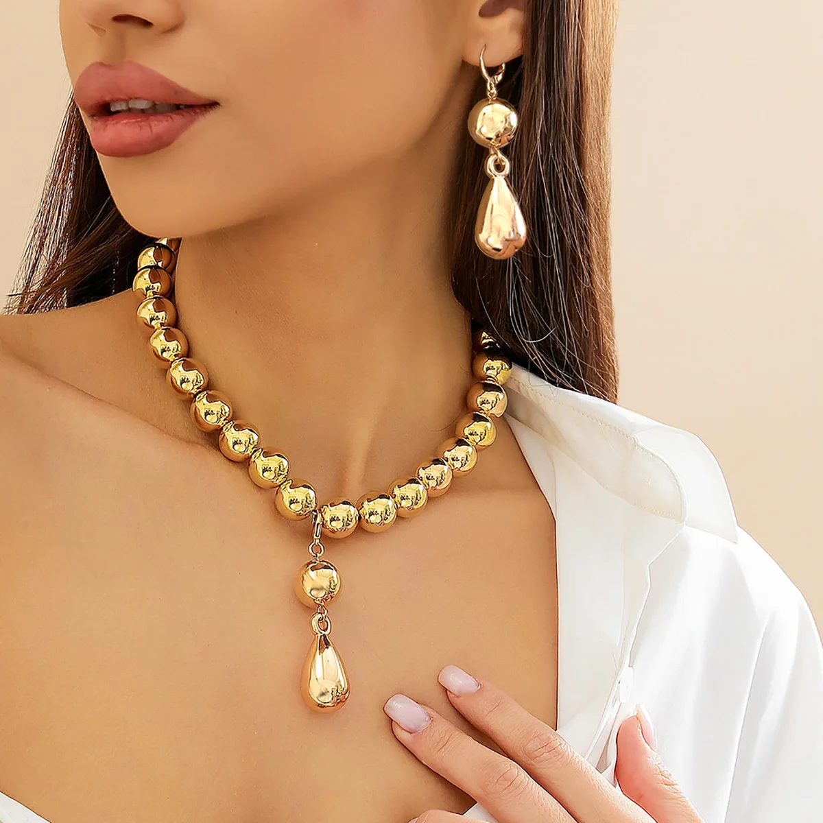 Product Name: Western Ladies Gold Silver Plated Exaggerated Fashion Girls Teardrop Big Beads Jewelry Set for Women Gold Plated