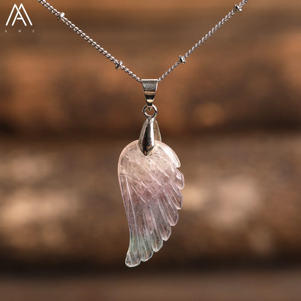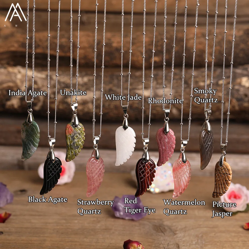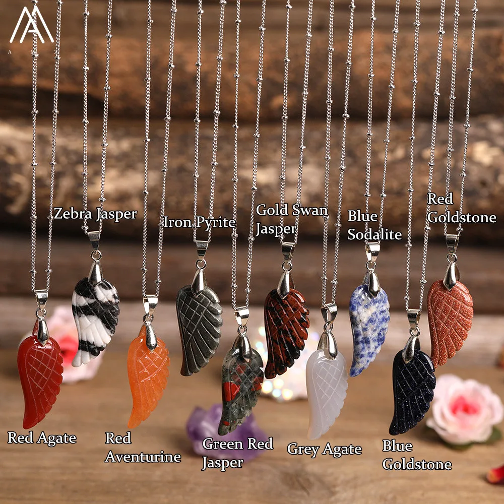 Product Name: Wing Necklace Silver Jewelry, Healing Crystals Natural Gemstone Angel Wings Pendant Necklace, Christmas Gifts