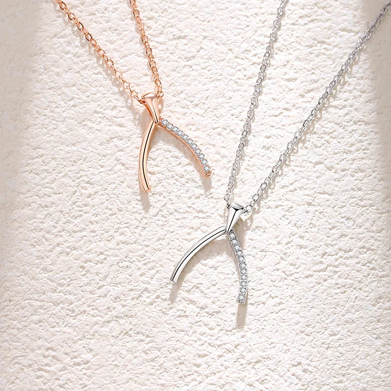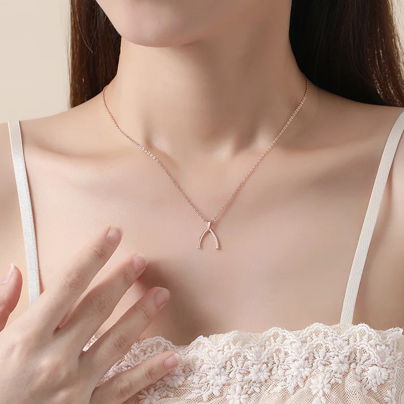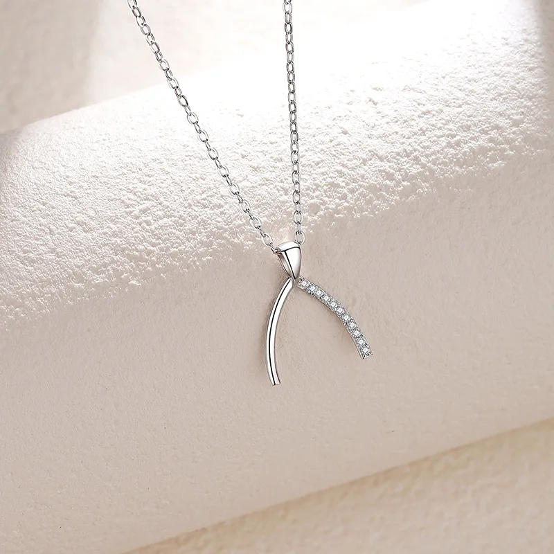 Product Name: Wishbone Necklace for Female Light Luxury Niche Plain 925 Sterling Silver Pendant Simplicity Temperament Choker Fine Gift Choice
