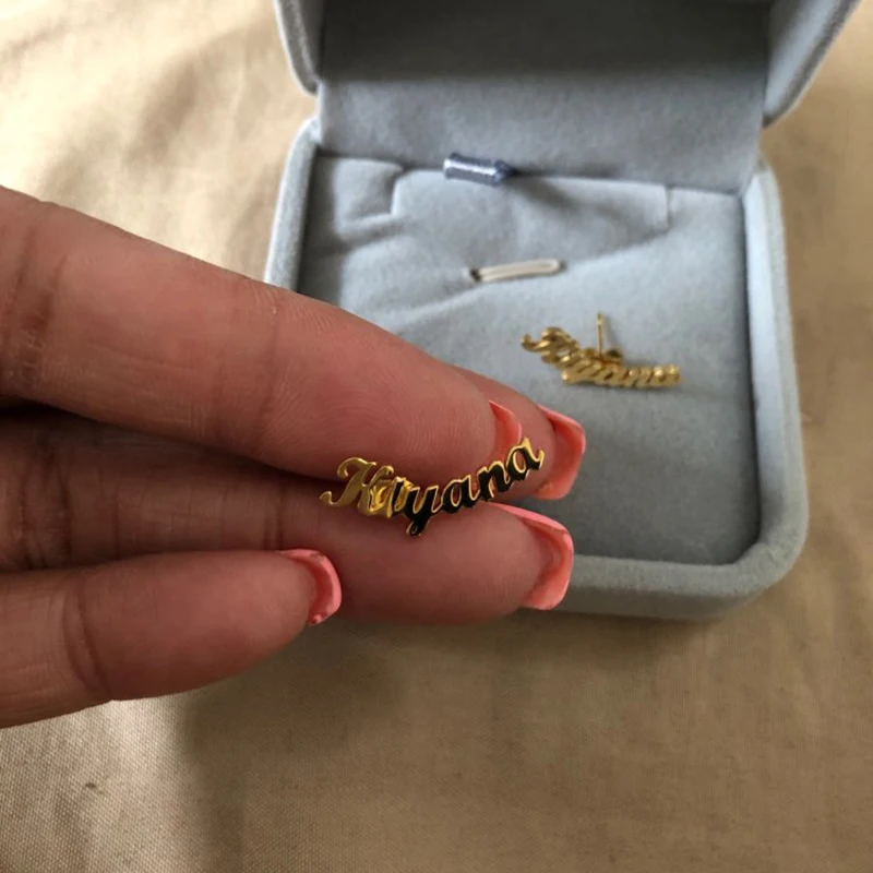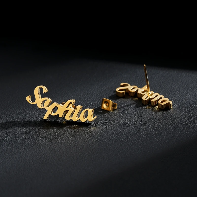 Product Name: Woman Girl Gold Name Earrings Personalized Stainless Steel Stud Earings Fashion Jewelry