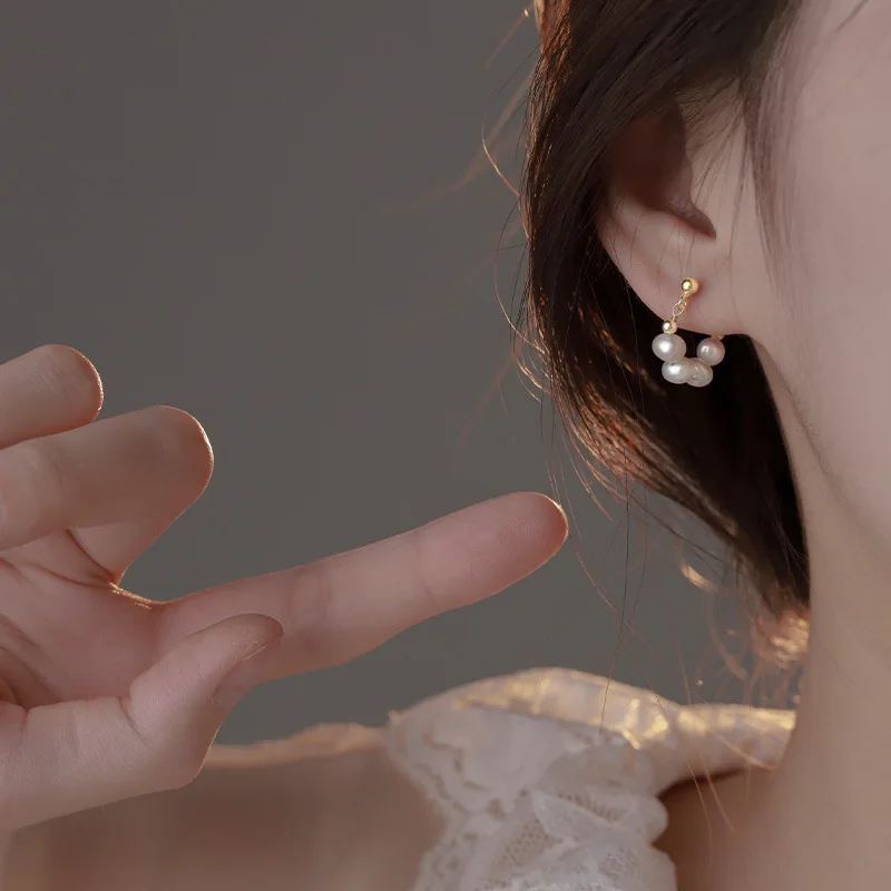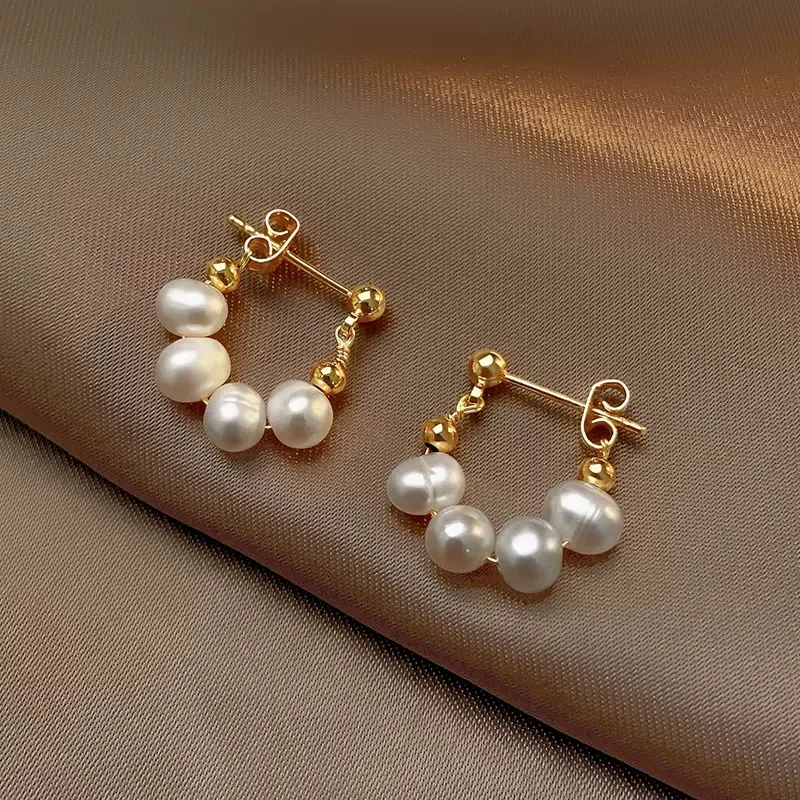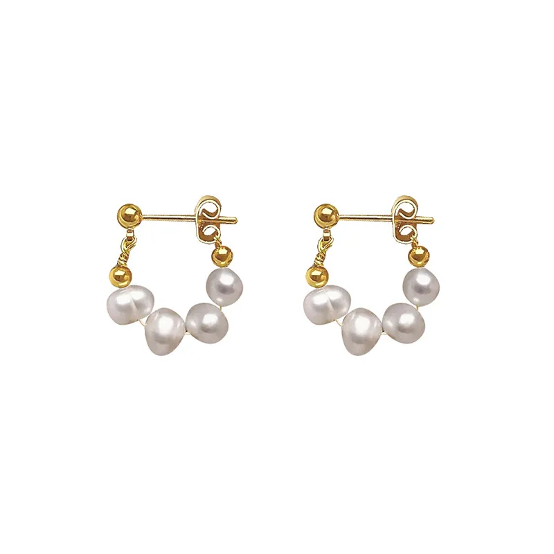 Product Name: Women 18K Gold Plated S925 Sterling Silver Jewelry Real Synthetic Baroque Freshwater Fresh Water Hoop Pearl Earrings