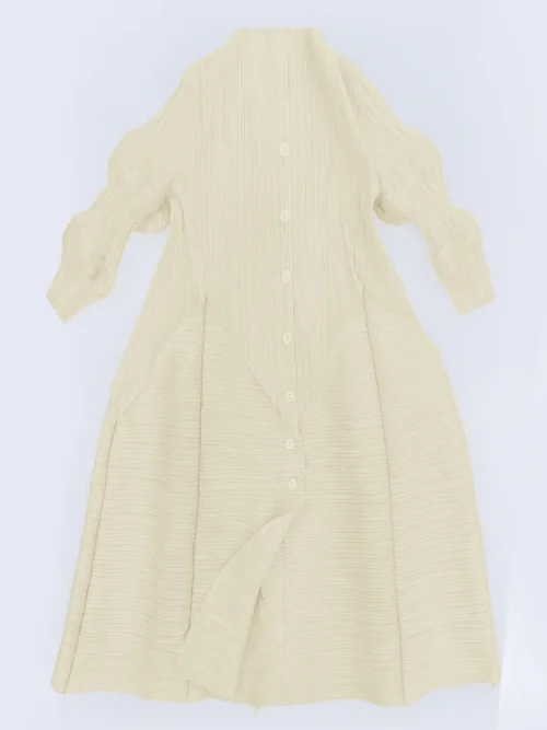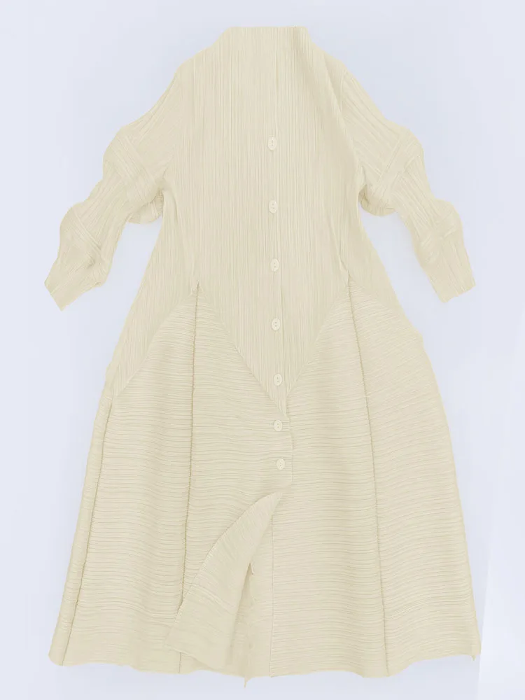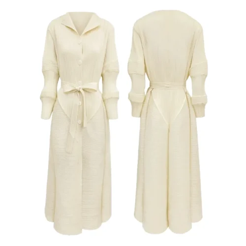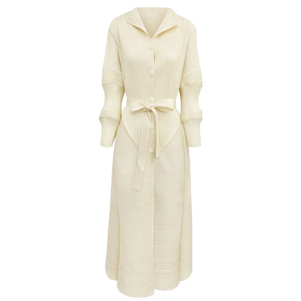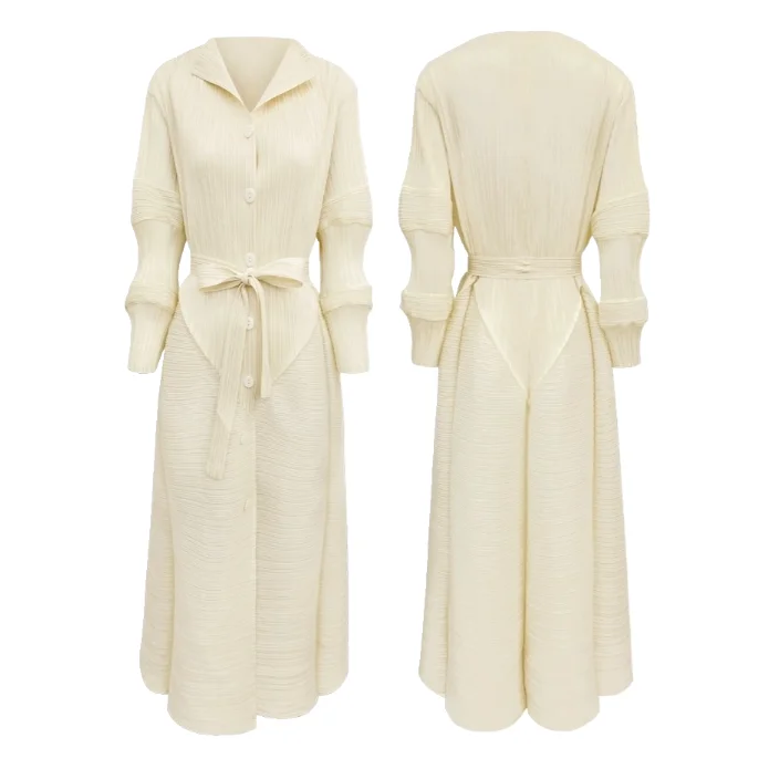 Product Name: Women 2025 Autumn New Long Semi Open Collar Niche Lotus Root Sleeve Lace up Waist Temperament Solid Color Dress