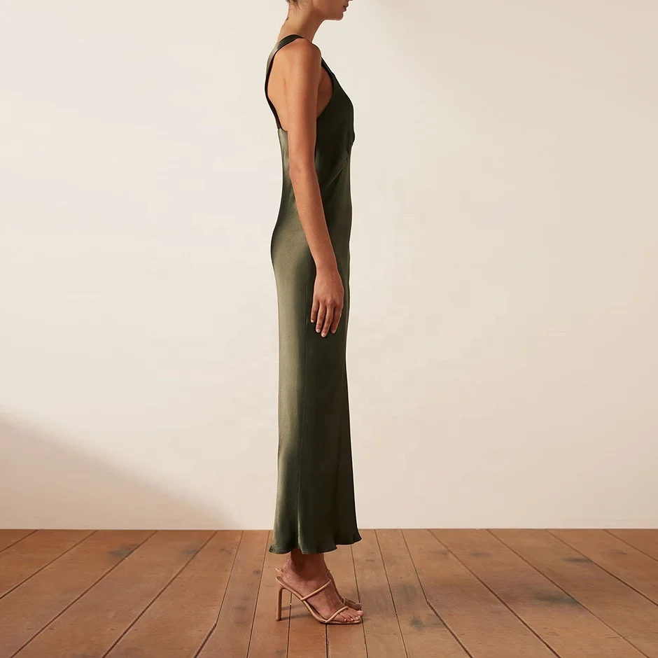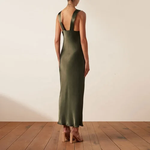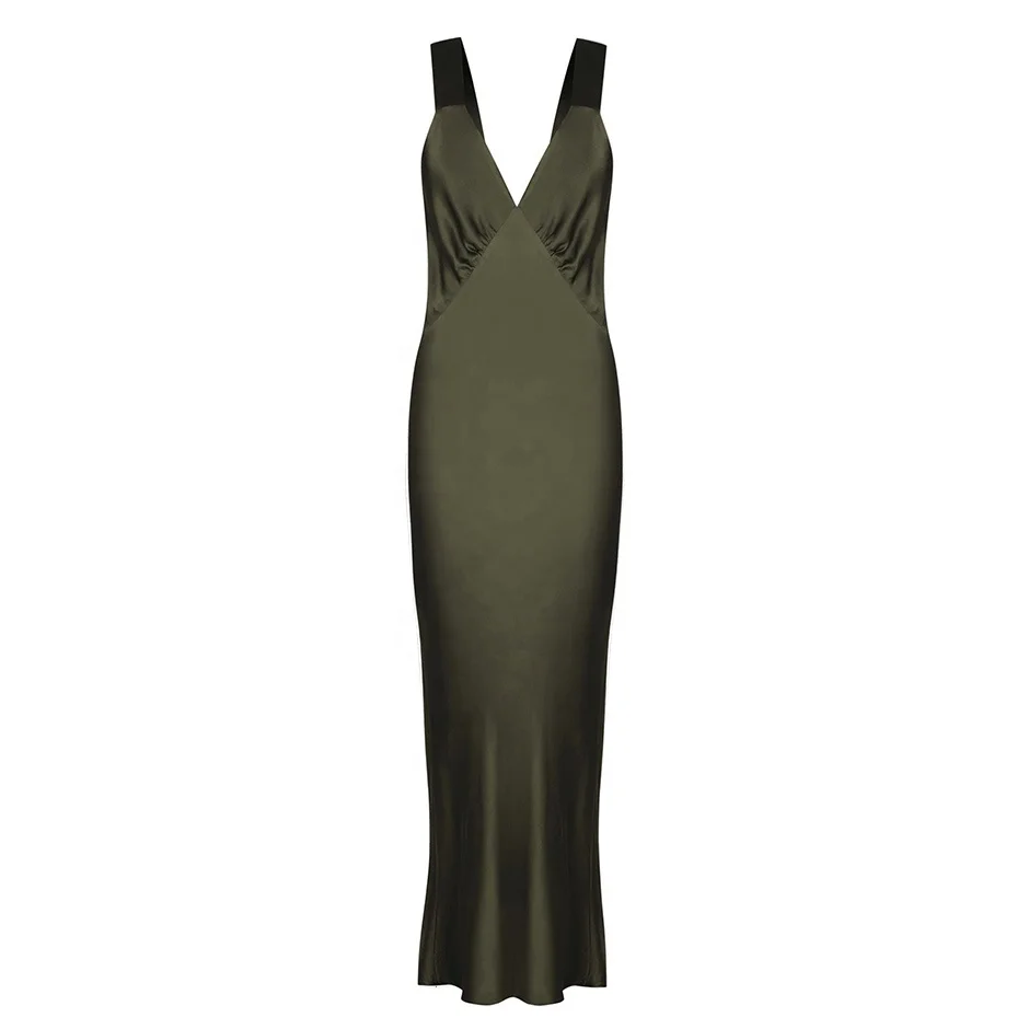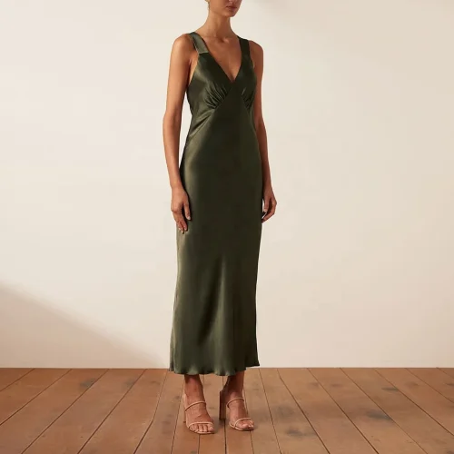 Product Name: Women Breathable Silk Fitted Wide Straps V Neck Maxi Dresses Sundress Vintage Dress Summer