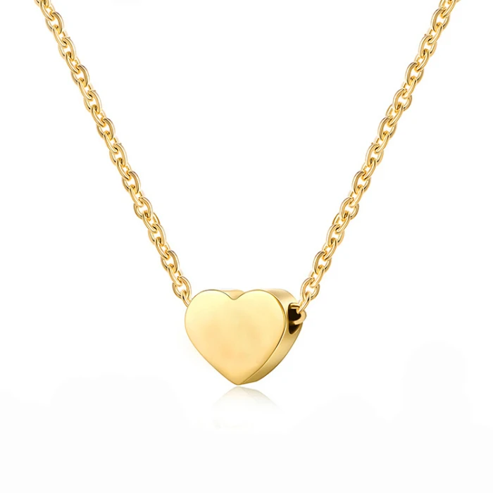 Product Name: Women Delicate Dainty Minimalist Jewelry Engraved Stainless Steel 18k Gold Plated Small Tiny Love Heart Pendant Necklace