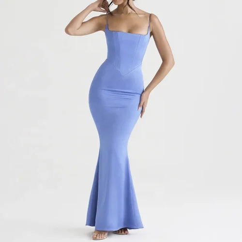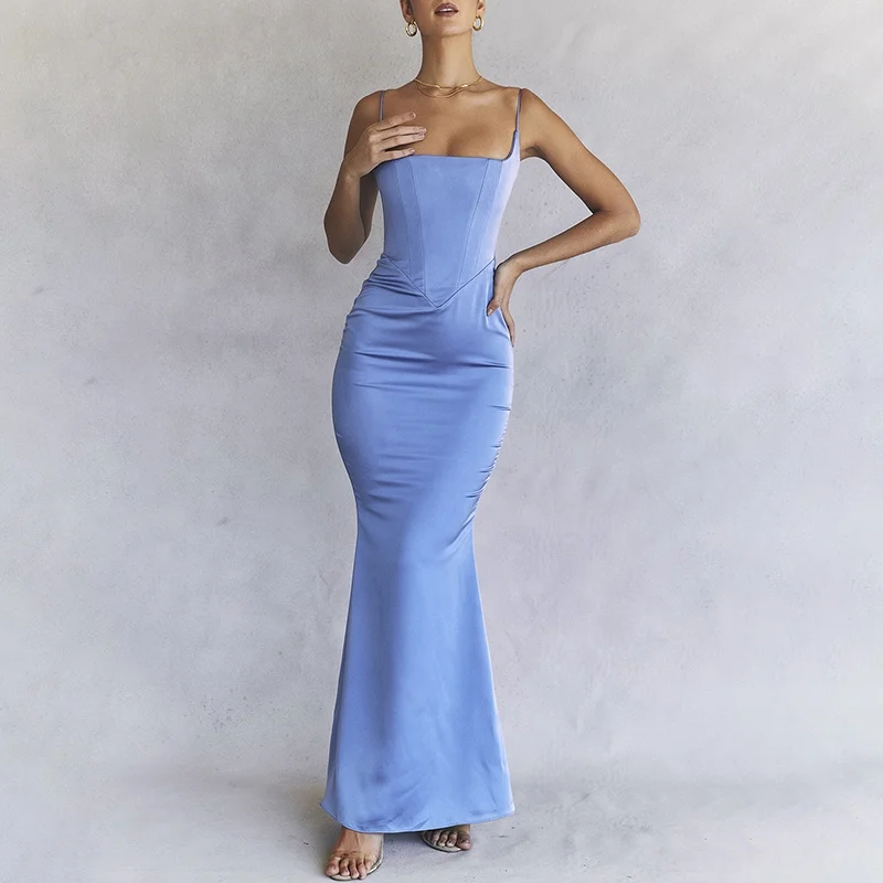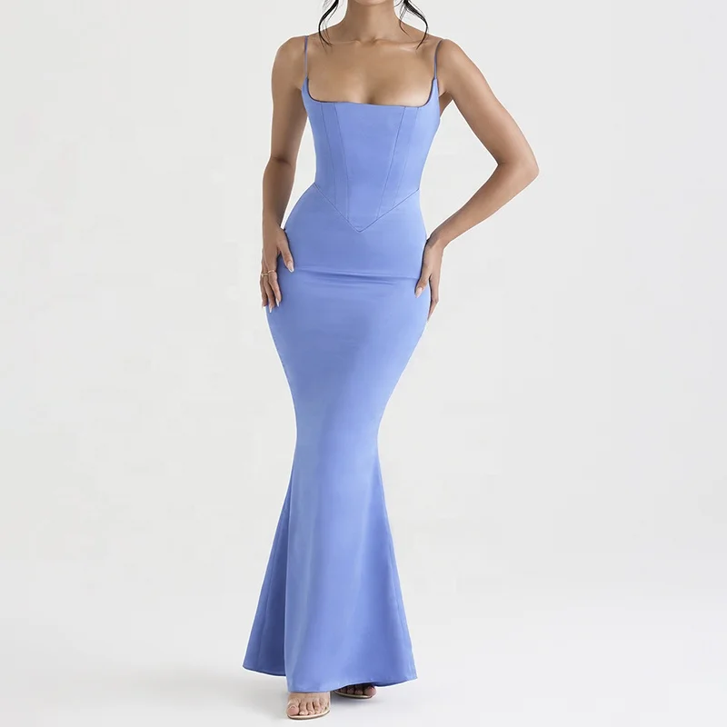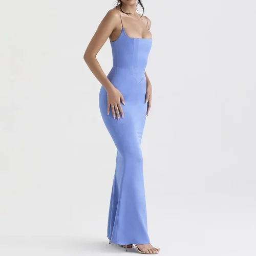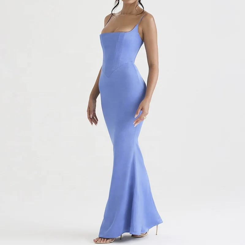 Product Name: Women Fashion Clothing Designers Periwinkle Satin Corset Maxi Dress Evening Dresses Women Lady Elegant