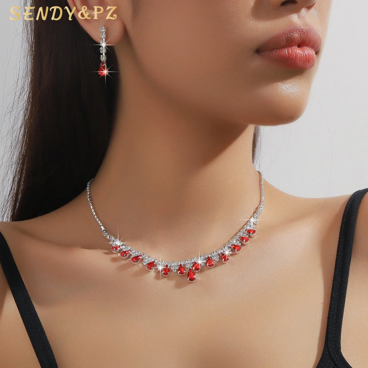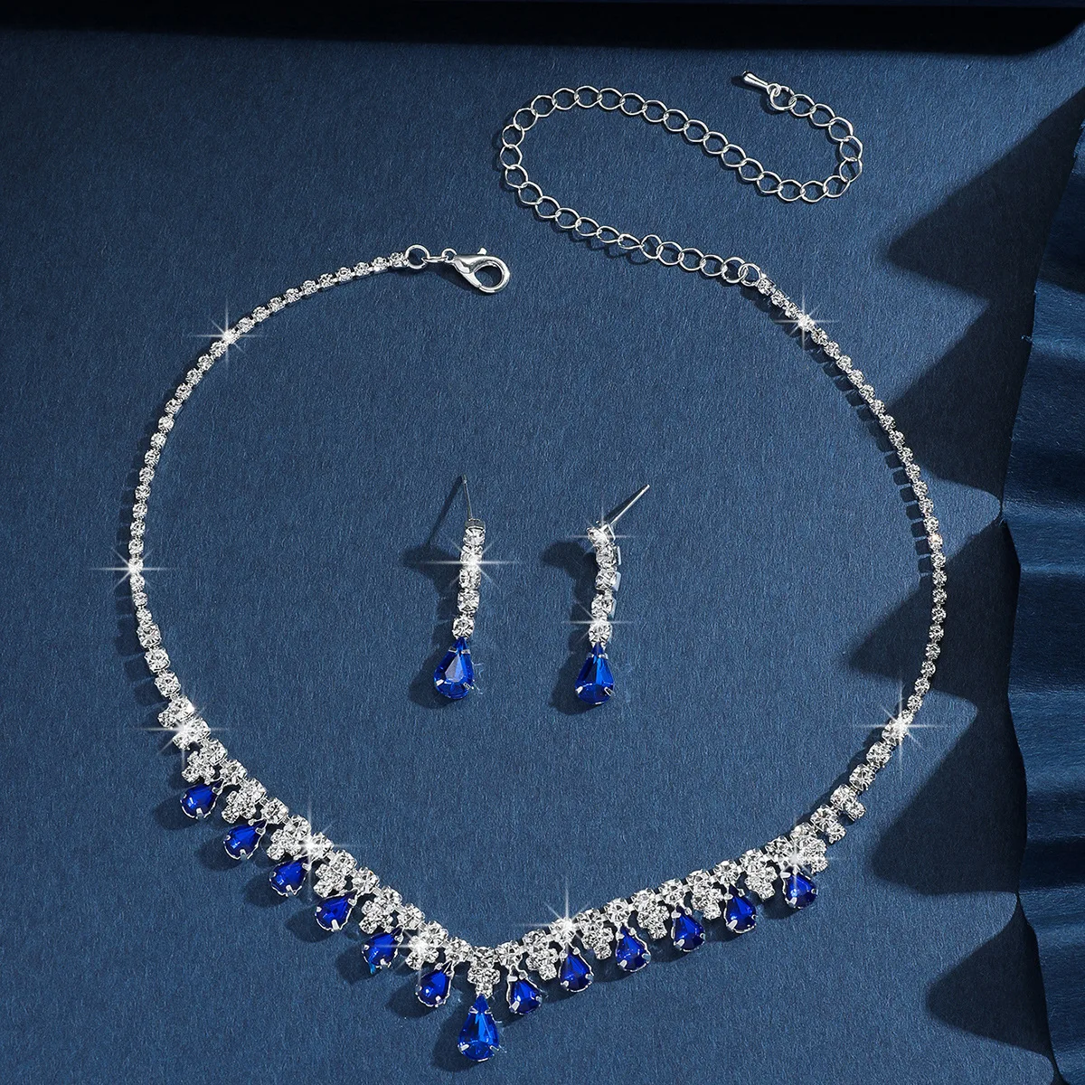Product Name: Women Fashion Luxury Fine Jewelry Rhinestone Crystal Necklace Earrings Set Shimmering Bride Wedding Engagement Party Jewellery
