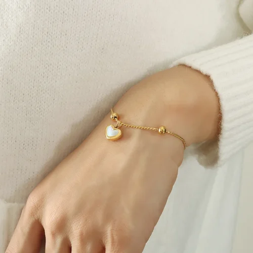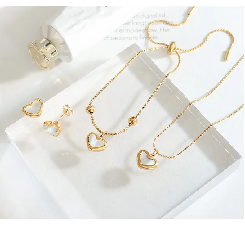 Product Name: Women Fashion Stainless Steel 18K Gold Plated White Heart Love Pendant Stud Earrings Bracelet Chain Necklace Jewelry Set