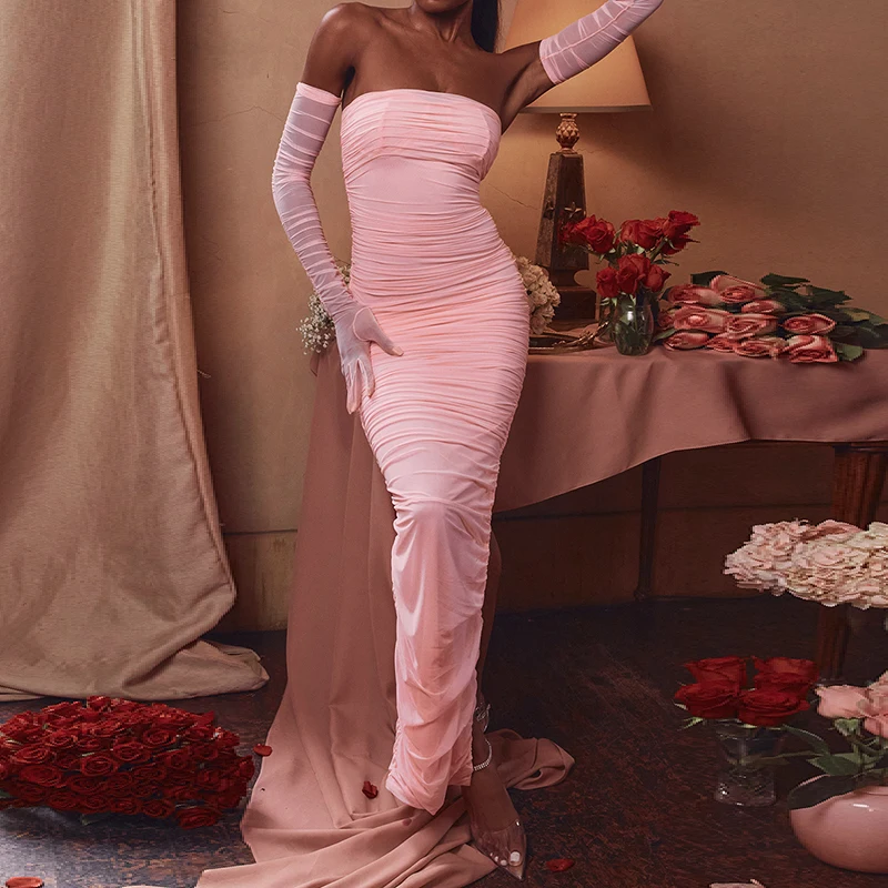 Product Name: Women High Quality Dress Fairy Pink Mesh Maxi Evening Dress