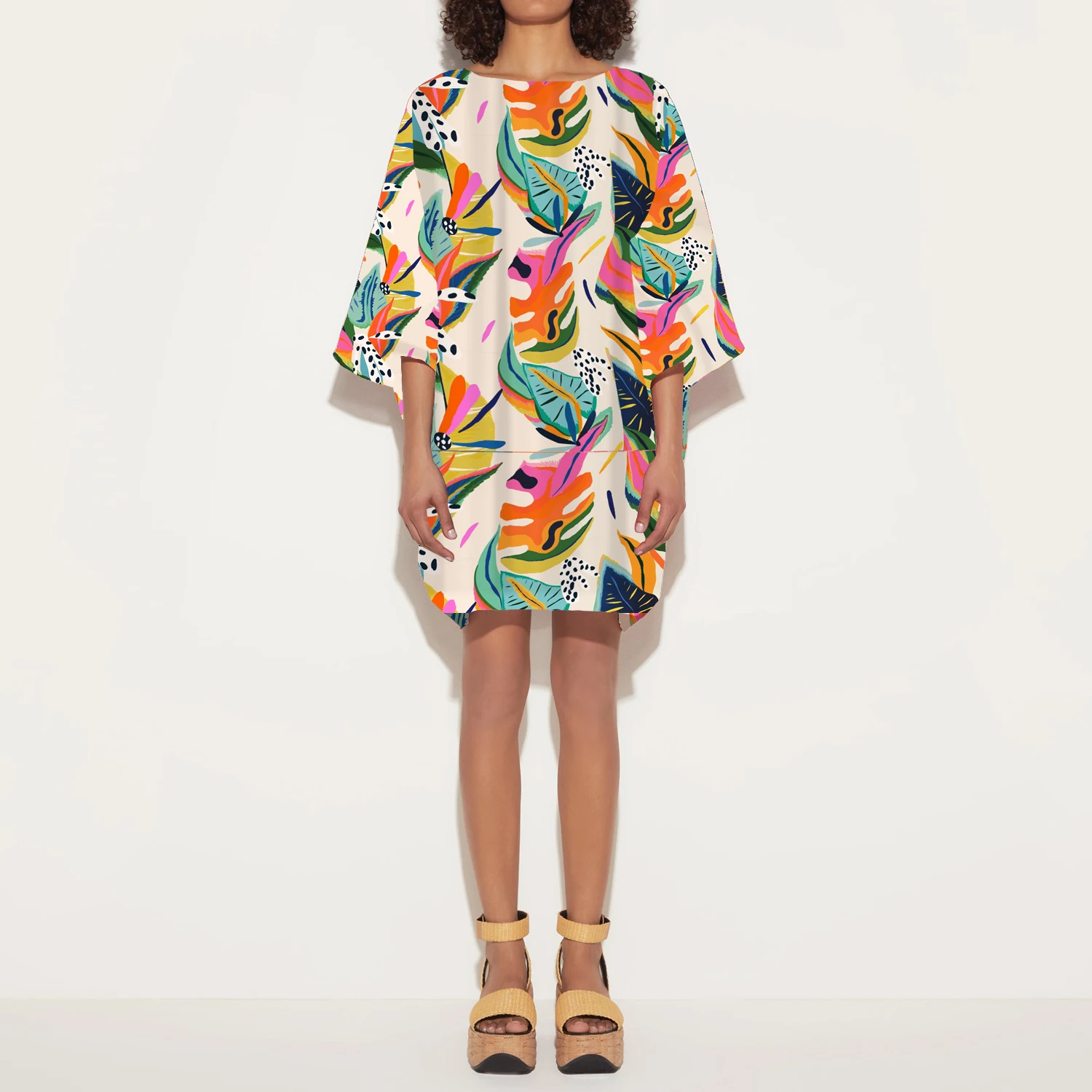 Product Name: Women Kaftan Tunic Floral Print Dress Summer Cotton Casual Dress Women