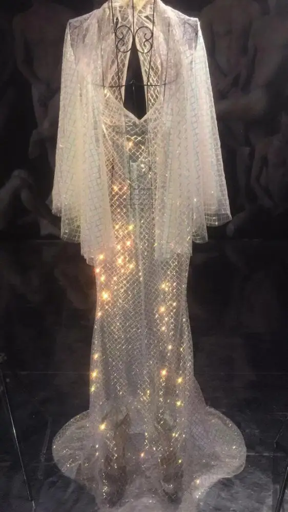 Product Name: Women Sexy Flashing Sequins See Through Club Wear Evening Outfit Party Dance Dress Birthday Party Dress Celebrate Long Dress