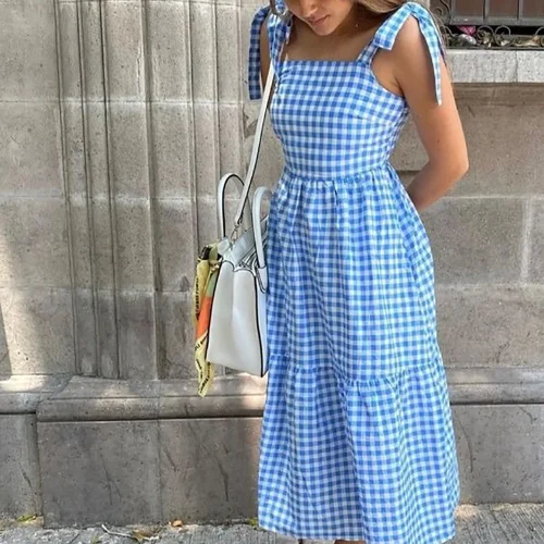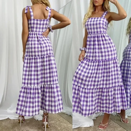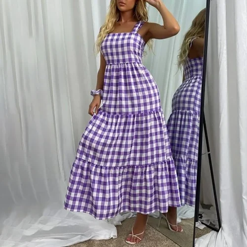 Product Name: Women Swing Dress Sleeveless One-shoulder Flowy Tiered Summer Casual Beach Long Tiered Dress