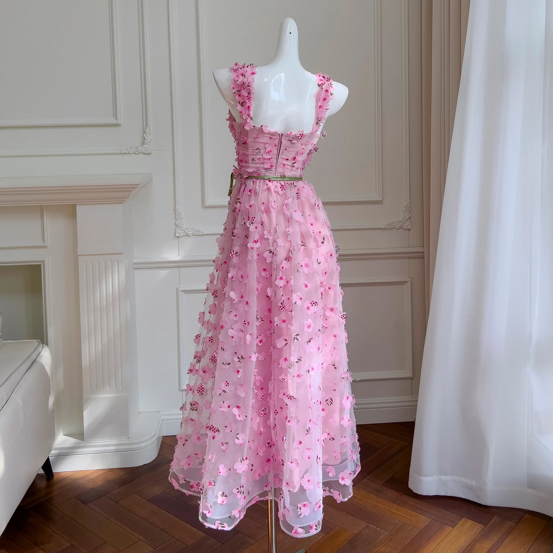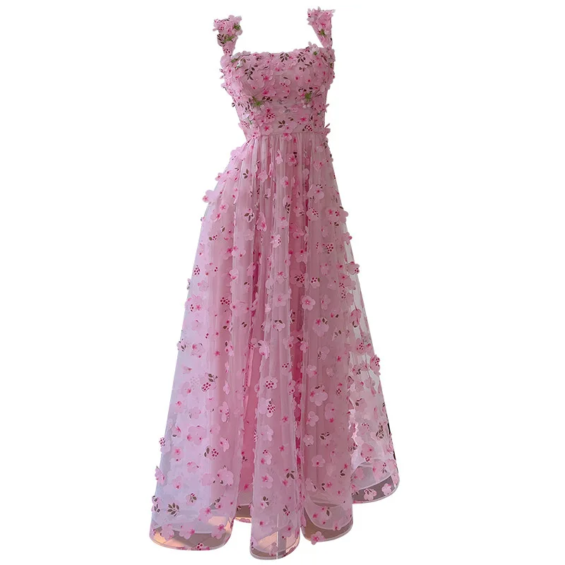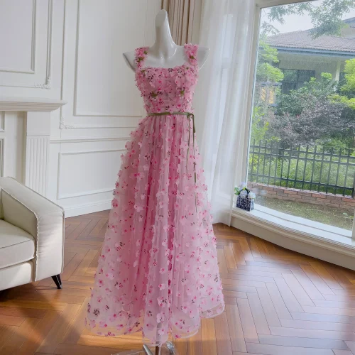Product Name: Women to Wear on Dates Summer Vacation Flower Suspender Long Skirt With Waist Lace up and Slimming A-Line Dress